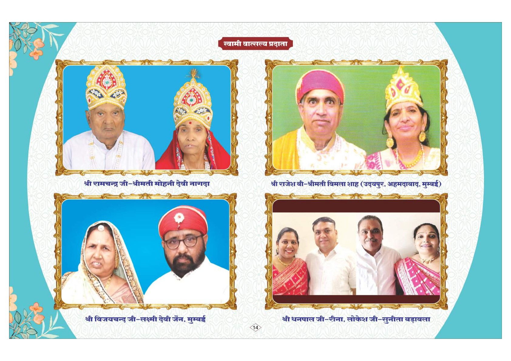चातुर्मास के लिए श्रीफल भेंट। श्री आदिनाथ ट्रस्ट सेक्टर 11 की समाज ने अध्यक्ष पारस चितोड़ा के साथ आचार्य श्री वर्धमान सागर जी को संघ सहित वर्ष 2024 का चातुर्मास उदयपुर सेक्टर 11 में करने हेतु श्रीफल भेट कर निवेदन कियाश्री आदिनाथ दिगंबर जैन चैरिटेबल ट्रस्ट सेक्टर 11 उदयपुर से ट्रस्ट प्रतिनिधि मंडल ने आज परम पूज्य आचार्य शिरोमणि 108 श्री वर्धमान सागर जी महाराज को तीर्थ नगरी ऋषभदेव में वर्षायोग 2024 हेतु श्रीफल भेट किया