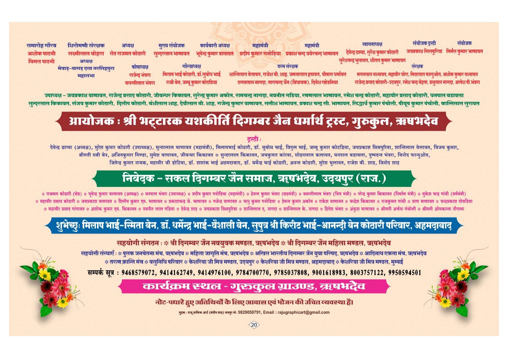इस अवसर पर वरिष्ठ सदस्यों में ट्रस्ट के पूर्व अध्यक्ष श्री सुन्दरलाल डागरिया ,भंवरलाल मुंडलिया,राजेंद्र प्रसाद कोठारी,अशोक शाह कमलकांत जोलावत ,चंद्रप्रकाश कारवा,फतेहलाल मुंडलिया,राकेश बोहरा,सुरेश हपावत ,महावीर प्रसाद सिंघवी,राजेश गदावत, पवन बोहरा,डॉ राजेश देवड़ा महिला मंडल से आशा देवड़ा,सरोज जोलावत,बसंती बोहरा आदि सदस्यगण उपस्थित थे ।राजेश पंचोलिया इंदौर से प्राप्त जानकारी संकलन अभिषेक जैन लुहाड़िया रामगंजमंडी