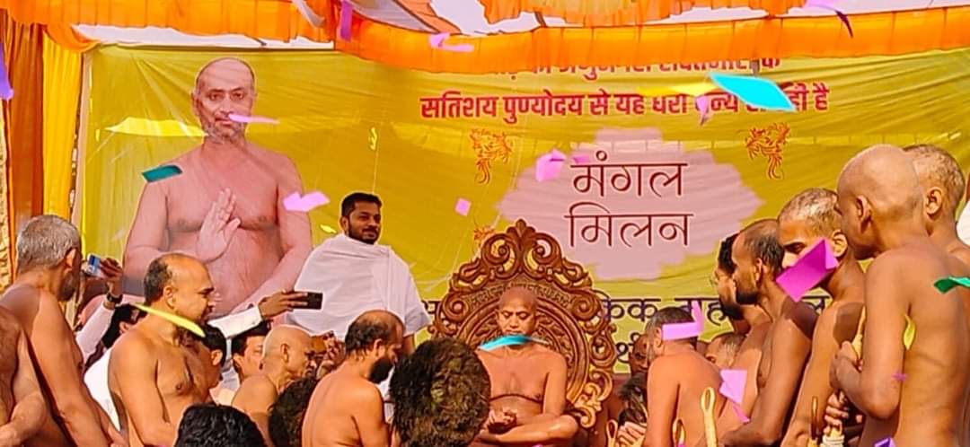 जब पूर्व में विराजित मुनि श्री शुद्ध सागर जी महाराज एवं मंगल विहार करके पहुंचे संकल्प सागर जी महाराज एवं सद्भाव सागर जी महाराज ने जब अपने गुरु आचार्य श्री 108 विशुद्ध सागर जी महाराज की मंगल आगवानी की तो सारा दृश्य भक्ति में हो गया
