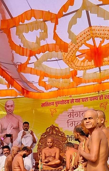 पूज्य आचार्य श्री ने मंगल प्रवचन देते हुए सभी को पटाखे का त्याग करवाया और नमोस्तु नमोस्तु की जय कारे गूंज रहे थे। आचार्य श्री ने कहा कि एक मुनिराज दिख जाए तो मनुष्य का भाग खुल जाता है आपके यहां तो 30 से अधिक मुनिराज एक छत के नीचे आए हैं। तो संपूर्ण नगर का भाग्य जा चुका है।