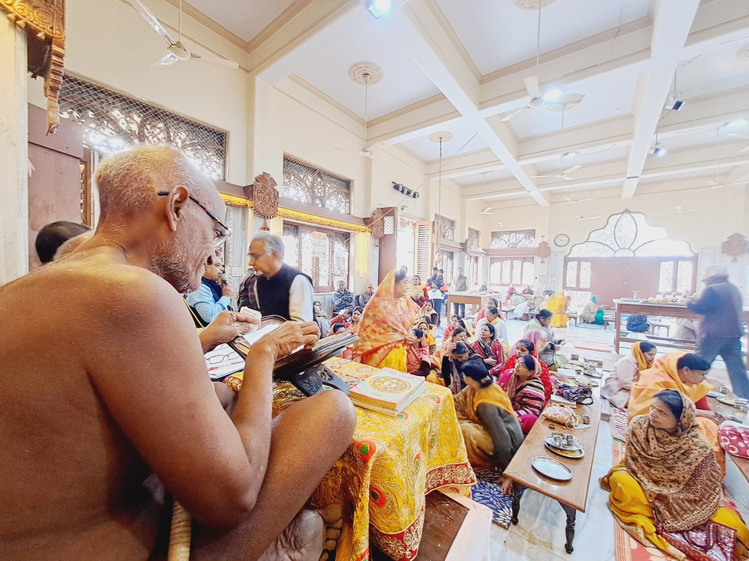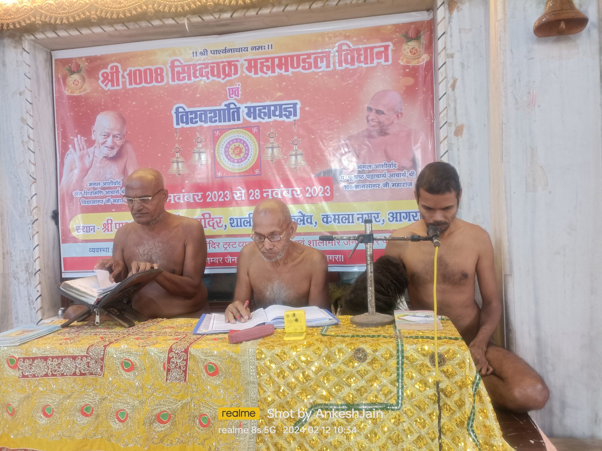 कार्यक्रम का शुभारंभ भक्तों ने आचार्यश्री के उच्चारित मंत्रो के साथ प्रभु का अभिषेक एवं वृहद शांतिधारा के साथ किया| भक्तों ने विधानाचार्य जी के कुशल निर्देशन में मंत्रोच्चारण के साथ श्रीजी के समक्ष मण्डल पर अर्घ्य अर्पित कर संगीतमय पूजन किया|