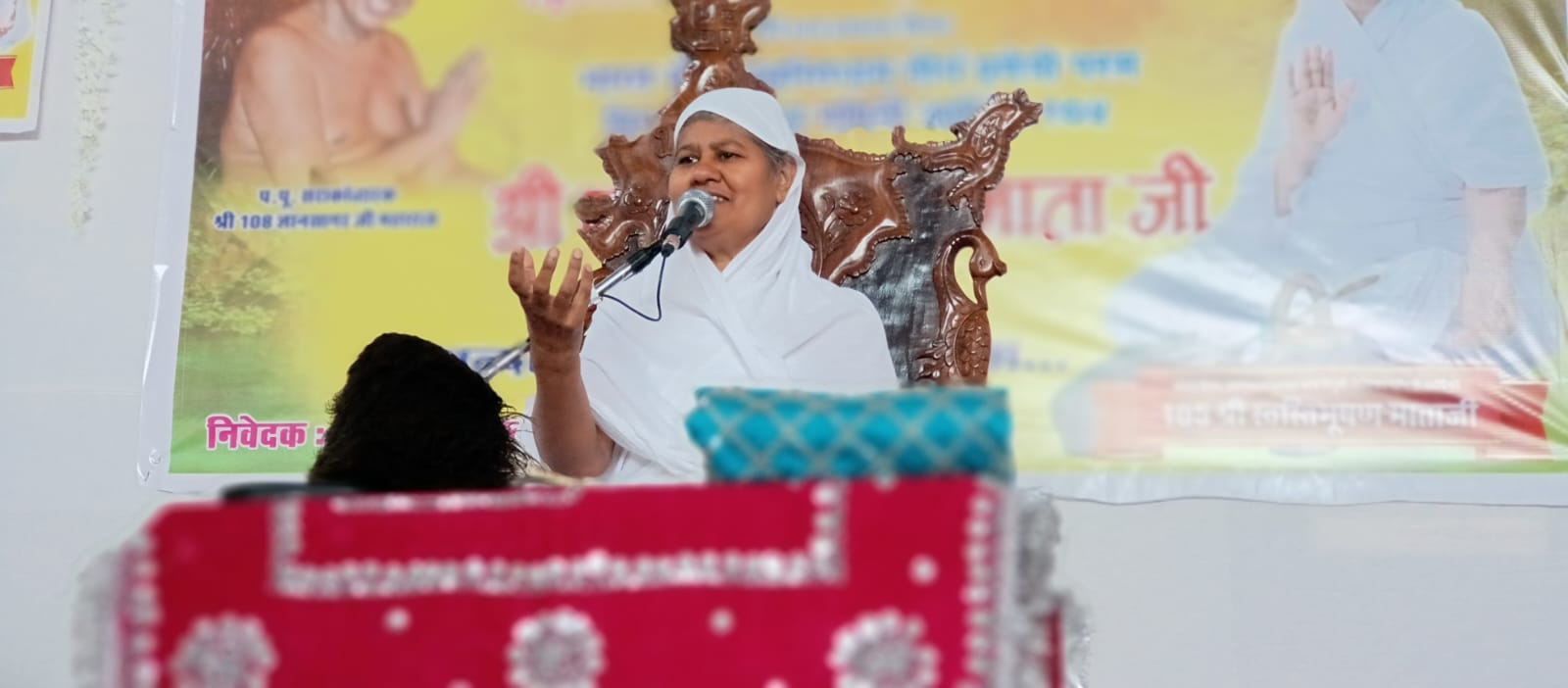 मंगलवार की बेला में पूज्य माता जी के सानिध्य में धर्म सभा का शुभारंभ हुआ धर्म सभा के शुभारंभ की बेला में आचार्य श्री ज्ञान सागर महाराज के चित्र के समक्ष दीप प्रज्वलन महिला शक्ति द्वारा किया गया एवं मंगलाचरण और लक्ष्मी जैन द्वारा किया गया। इस अवसर पर मनीष भैया ने गुरु मा की कृपा का बखान करते हुए स्वस्ति धाम के विषय में बताया उन्होंने बताया कि जब माताजी जहाजपुर पहली बार गई उस समय छोटा सा गांव था और विधान कराया तो बड़ी ही छोटी छोटी बोली हुई। वहा पर विधान कराया गया। फिर माताजी का विहार वहाँ से 20 km दूर हुवा ओर महावीर जयंती के दिन प्रतिमा निकली जिस की सूचना माताजी को भी मिली और जहाजपुर के समाजजन ने माताजी को जहाजपुर आने का निवेदन किया। फिर माताजी जहाजपुर आयी और सब जगह शासन और प्रशासन को फोन कर सूचना दी गई। उसके बाद प्रभु की मूर्ति को लेकर मंदिर लाया गया।