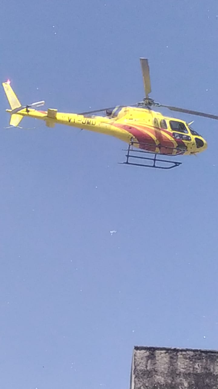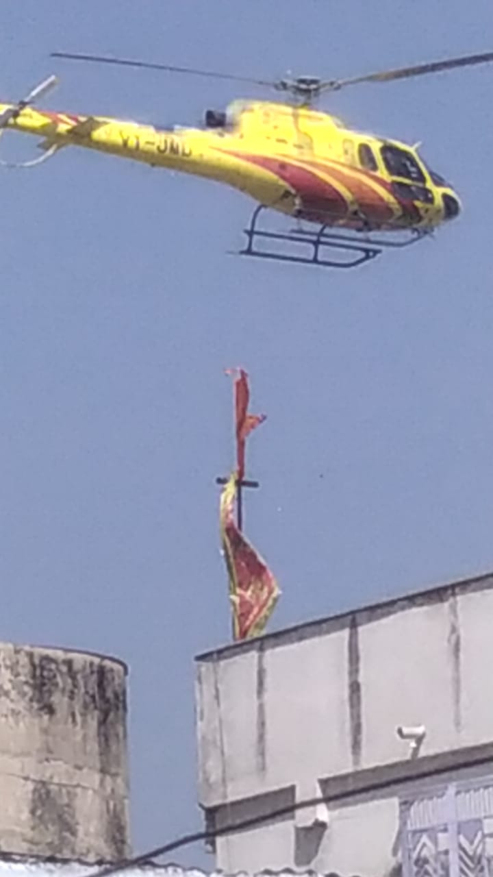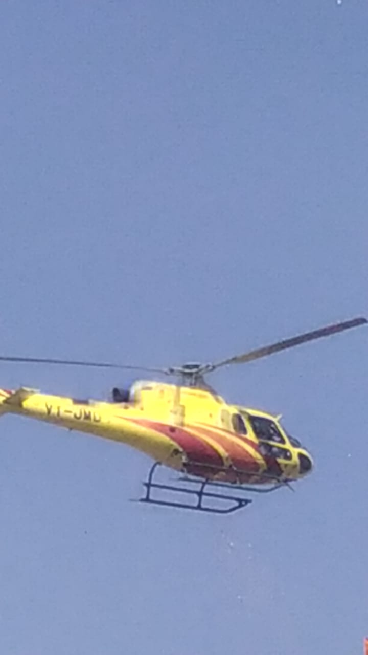 हेलीकॉप्टर तो कई बार कई नेताओं के रामगंजमंडी नगर में आए लेकिन धार्मिक आयोजन में हेलीकॉप्टर कुछ ही समय आप आए।