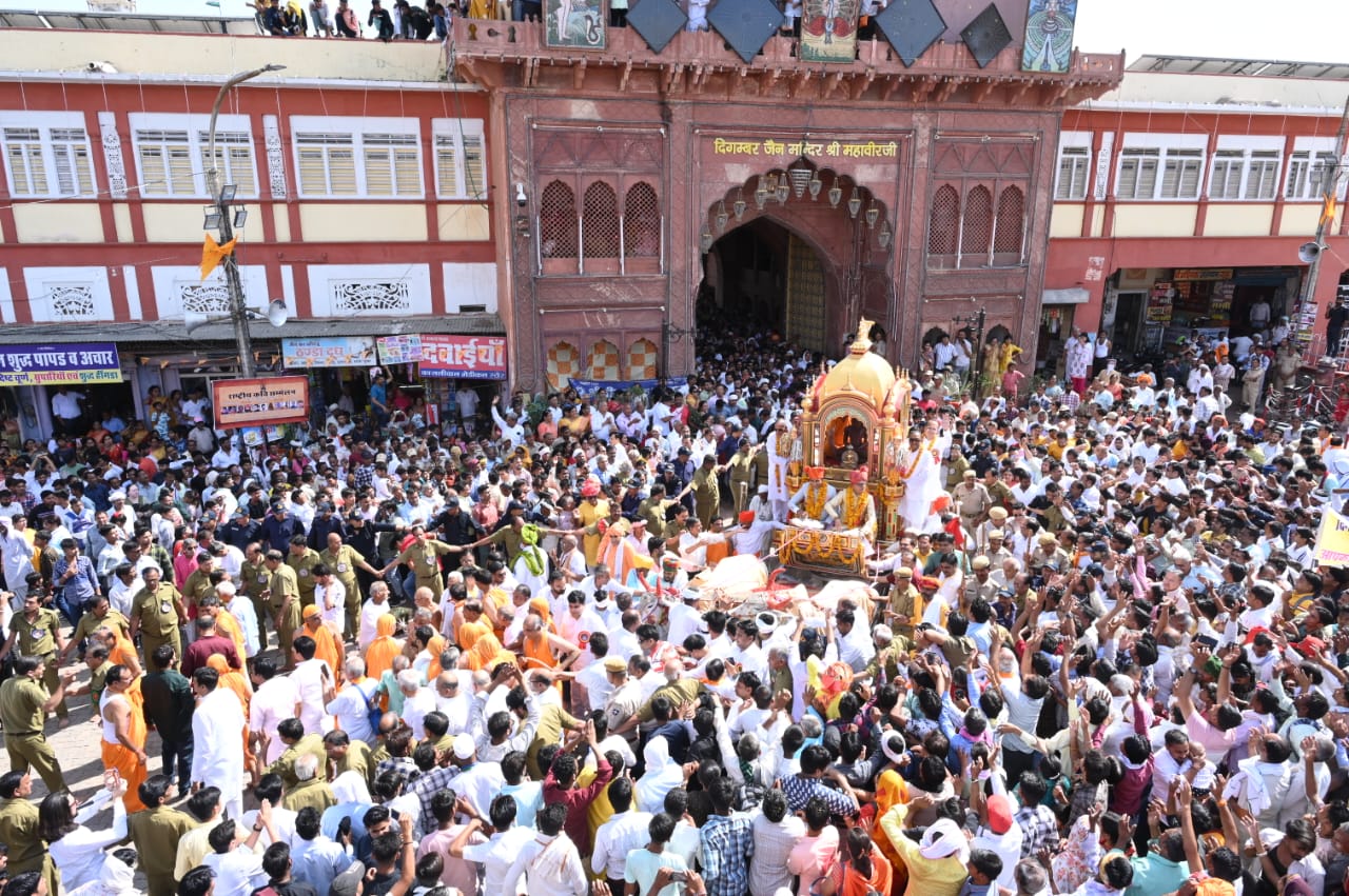 इससे पहले प्रबंधकारिणी कमेटी द्वारा मूलनायक भगवान महावीर स्वामी की मूर्ति निकालने वाले चर्मकार वंशज के प्रतिनिधि का सम्मान किया गया । इसके बाद आचार्य श्री विमल सागरजी, उपाध्याय ऊर्जयन्त सागर,जी, मुनि श्री चिन्मयानन्द सागर जी महाराज के सानिध्य में जयकारों के बीच रथयात्रा का शुभारम्भ हुआ