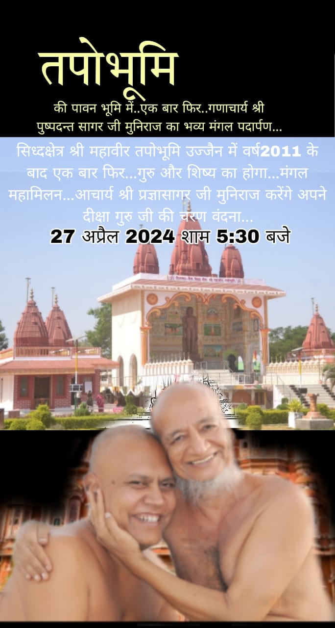 तपोभूमि प्रणेता आचार्य श्री प्रज्ञा सागर जी महाराज, एवम आचार्य श्री पुष्पदंत सागर जी महाराज का इससे पूर्व वर्ष 2011 में तपोभूमि उज्जेन में महा मिलन हुआ था।