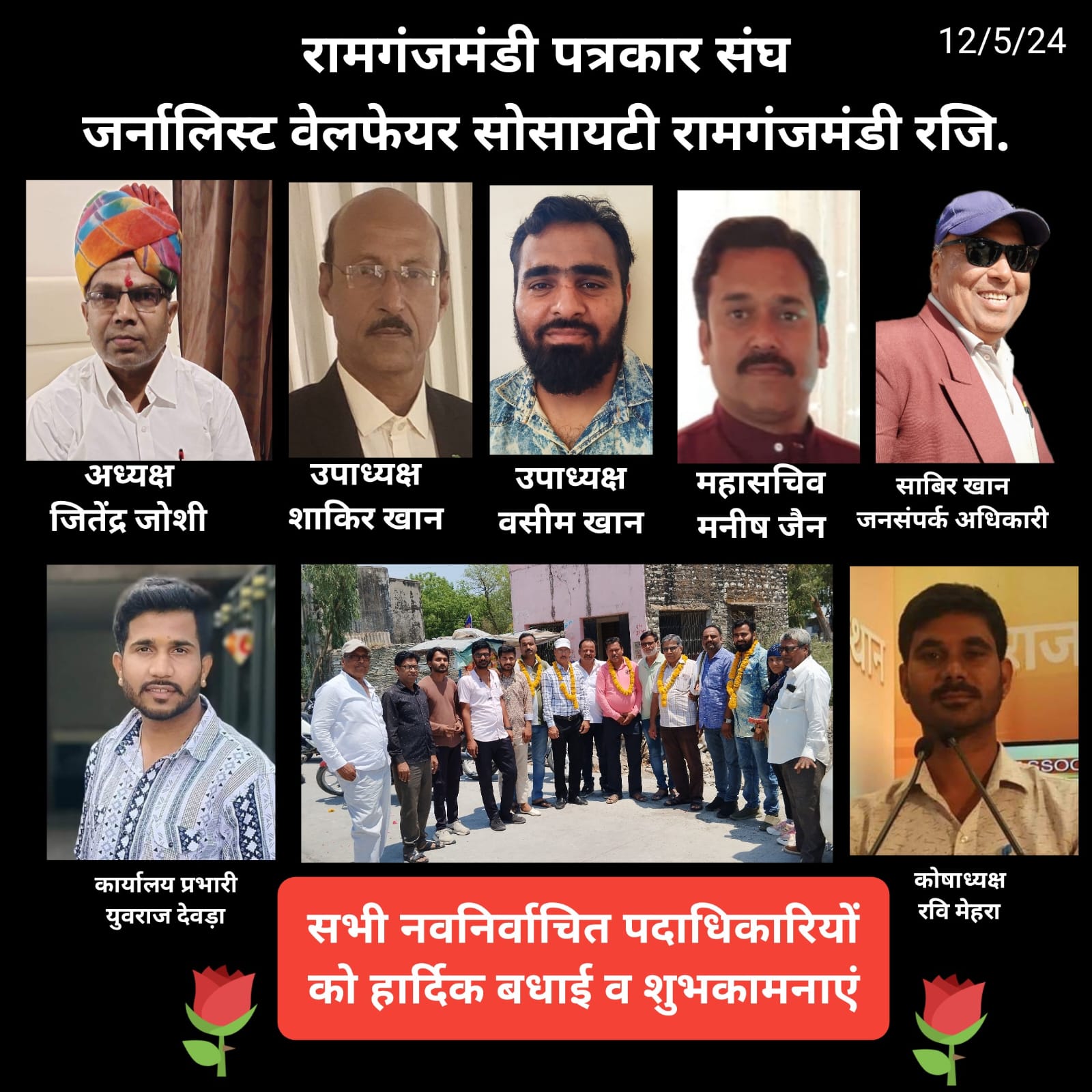 *रामगंजमंडी पत्रकार संघ (रजि.) के जितेंद्र जोशी निर्विरोध अध्यक्ष निर्वाचित हुए, उपाध्यक्ष पद पर शाकिर खान, वसीम खान, व महासचिव पद पर मनीष जैन नियुक्त हुए*