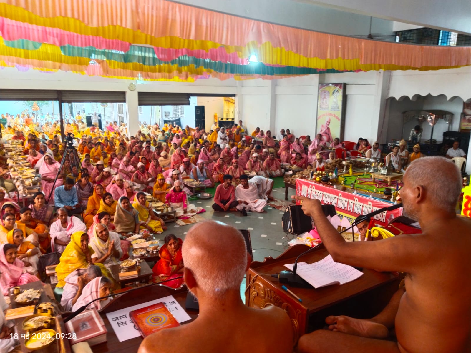 उपरोक्त जानकारी देते हुये प्रवक्ता अविनाश जैन ने बताया विधान के पांचवे दिवस विधानाचार्य अविनाश भैय्या भोपाल एवं अनूप भैया विदिशा द्वारा भक्ती भाव के साथ संगीतकार नीलेश जैन बुडा़र की स्वर लहरियों के साथ आचार्य गुरुदेव की भक्ती करते हुये 512 अर्घ समर्पित किये गये, 19 मई रविवार को1024 अर्घ समर्पित किये जाऐंगे सोमवार 20 मई को विश्वशांति महायज्ञ होकर विश्व में शांति की भावना की जाएगी।