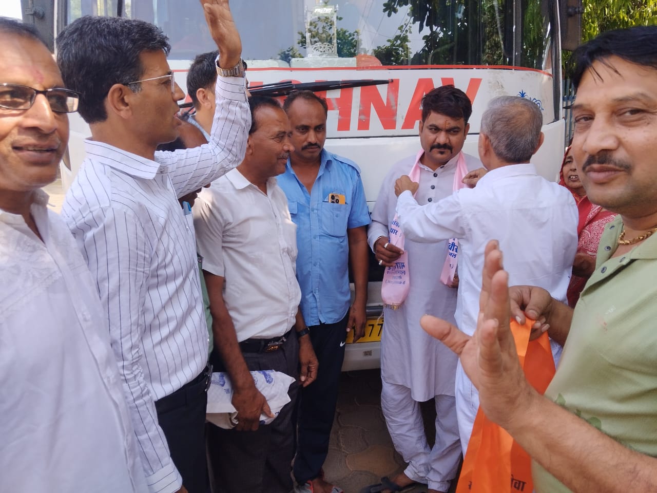 यात्रियों की विदाई अवसर पर महावीर इंटरनेशनल के वीर सदस्य रमेश चंद्र गांधी सचिव कैलाश पंचोरी, मुकेश गांधी राजेंद्र गांधी आदि उपस्थित थे।