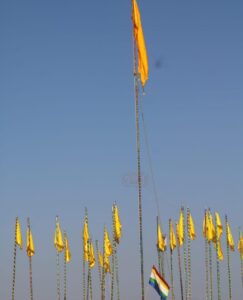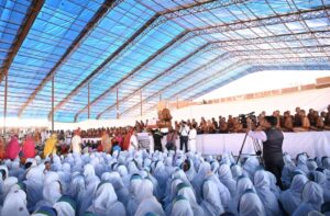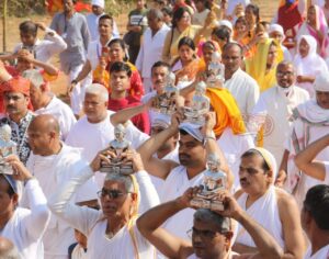 महामहोत्सव के शुभांरभ के अवसर पर पूजन भक्ति के शुभ अवसर पर भक्तों को सुबह आचार्य श्री विद्यासागर जी महाराज ने दिव्य देशना में कहा कि ध्वजा रोहण के माध्यम से प्रारंभ होने जा रहा है इस सदी का सबसे बड़ा आयोजन जो अपने आप में एक महत्वपूर्ण वस्तु है, दूर दूर से व्यक्ति भी समोशरण की ओर आकृष्ट हो रहा है। ध्वाजारोहण देखने में तब आनंद आता है जब वह लहराता है, पर जिस माध्यम से यह लहराता है वह हमे दिखाई नही देती, उसके लिए पवन की अवश्यकता होती हैं उसी तरह हम बाहरी स्वरूप देख लेते हैं, वेशभूषा देख लेते हैं किंतु भीतर से रत्नात्रय हैं ,तो हम हवा का काम कर जाते है और यदि बाहर से दिगम्बरत्व हैं तो जीवन में चार चांद लग जाते है। ध्याजारोहण के साथ कार्यक्रम का मंगलाचरण होगा। आज आचार्य श्री विद्यासागर जी महाराज को नवधा भक्ति भाव से पड़गाहन करके आहार देने का सौभाग्य दमोह निवासी संतोष ईलेक्टिकल के परिजनों को प्राप्त हुआ। *हजारों कलश यात्रा में शामिल हुई महिलाएं दोपहर करीब एक बजे महामहोत्सव में दमोह नगर सहित सम्पूर्ण जिले की महिला मंडल, आदिनाथ बालिका मंडल ने 2 किलो मीटर की कलश यात्रा में सम्मिलित हुई जिसमे हजारों महिलाओं और बालिकाओं के समूह शामिल हुए, पटेरा, हटा, दमोह, गौरझामर, गंजबासौदा के दिव्य घोष आकर्षण का केन्द्र थे। इस अलौकिक दृश्य के बारे में सुबह गुरुदेव ने पहले ही संबोधन कर दिया था। आचार्य श्री विद्यासागर जी महाराज के जन्म स्थल के निकट जिले कोल्हापुर, जयसिंगपुर से आए 400 सेवक आकर्षण का केन्द्र रहे। कलश यात्रा मंडप में पहुंची तो आचार्य श्री विद्यासागर जी महाराज के आशीर्वाद एवं संपूर्ण मुनि संघ, आर्यिका माताजी के सानिध्य में प्रतिष्ठाचार्य बाल ब्रह्मचारी विनय भैया के निर्देशन में ध्वाजारोहण संपन्न हुआ। ध्वाजारोहण का सौभाग्य रतन लाल जी, अशोक जी पटनी परिवार को प्राप्त हुआ। *विशाल समोशरण को देखकर श्रद्धालु आश्चर्य चकित हो गए*। ध्वाजारोहण के बाद इस सदी में आयोजित होने वाले सबसे विशाल कुण्डलपुर महामहोत्सव 2022 में जब आचार्य श्री विद्यासागर जी महाराज ने मुख्य कार्यक्रम स्थल पर विराजित हुऐ तो उस अलौकिक दृश्य को देख कर श्रद्धालु आश्चर्य चकित हो गए , ऐसा दृश्य ऐतिहासिक दृष्टि से 2500 वर्ष पूर्व भगवान महावीर के समोशरण का प्रमाण मिलता है। इस अलौकिक दृश्य के साक्षी बने हजारों श्रद्धालु। ध्वाजारोहण संपन्न होने के बाद आर्शीवाद वचन देते हुए गुरुदेव ने कहा कि कोई कार्य करना होता है तो कार्यकर्ताओ का संयोजन होना चाहिए, क्योंकि जब कभी विपरीत परिस्थितियों का सामना करना पड़ता है तो कहा जाता हैं कि युद्ध स्तर पर काम किया जाता है, ध्वाजारोहण संपन्न होने से पवित्र वस्तुओं की संयोजना हाेती हैं उसे मंगलाचरण कहते