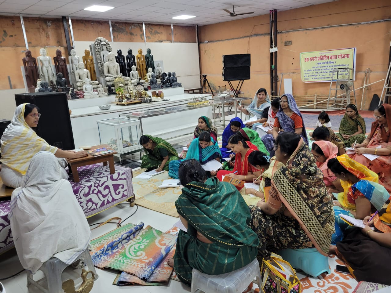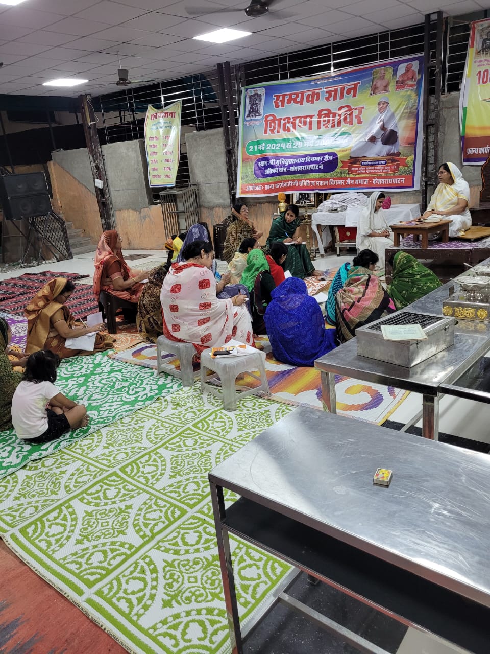 गणिनी आर्यिका स्वस्तिभूषण माताजी सानिध्य मे सम्यकज्ञान शिविर छहढाला का अध्यन कराते हुए बताया गया की गुरु आर्यिका के सानिध्य मे रहने से ही हमारा जीवन उन्नत बनता है त्याग नियम संयम व्रत हमारी विशुद्धी बढ़ाने मे सहायक है स्वस्तिभूषण माताजी
