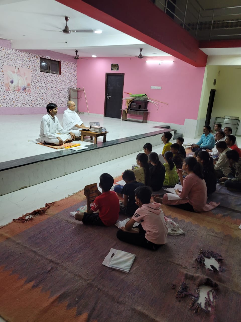 परम पूजनीय भारत गौरव गणिनी आर्यिका 105 स्वस्तिभूषण माताजी सानिध्य मे सम्यकज्ञान शिविर के दुसरे दिवस की शुरुआत श्रीजी का अभिषेक शांतिधारा पूजन से की गयी जानकारी देते हुए चेतन जैन ने बताया की विभिन्न कक्षाओं के माध्यम से धार्मिक अध्यन कराया जा रहा है यह अध्यन मनीष भया गजेन्द्र शास्त्री विनोद भया प्रियंका दीदी द्वारा कराया जा रहा है बुधवार की बेला मे छहढाला का अध्यन कराते हुए पंचांग नमस्कार करना सिखाते हुए बताया गया की कल्याण का मार्ग गुरु एवम आर्यिका ही बता सकते है इन्ही से हमारा जीवन उन्नत बनेगा निगोद का वर्णन करते हुए बताया गया की जीव एक श्वास मे 18 बार जन्म लेता है और मरता है
