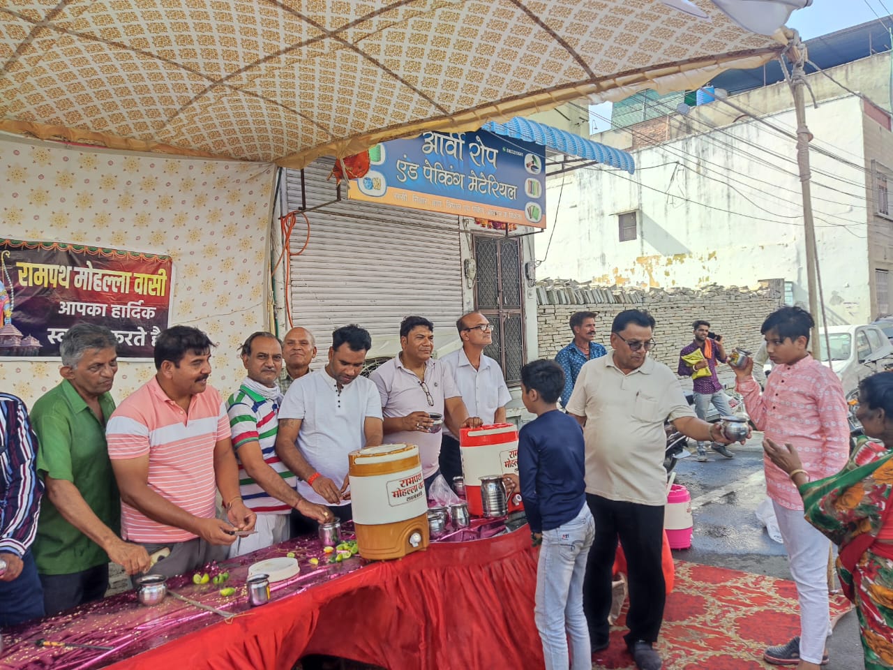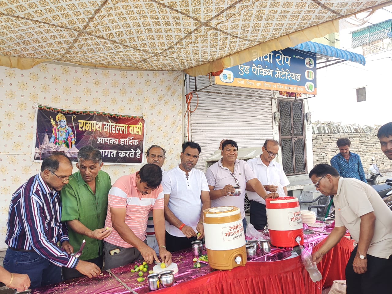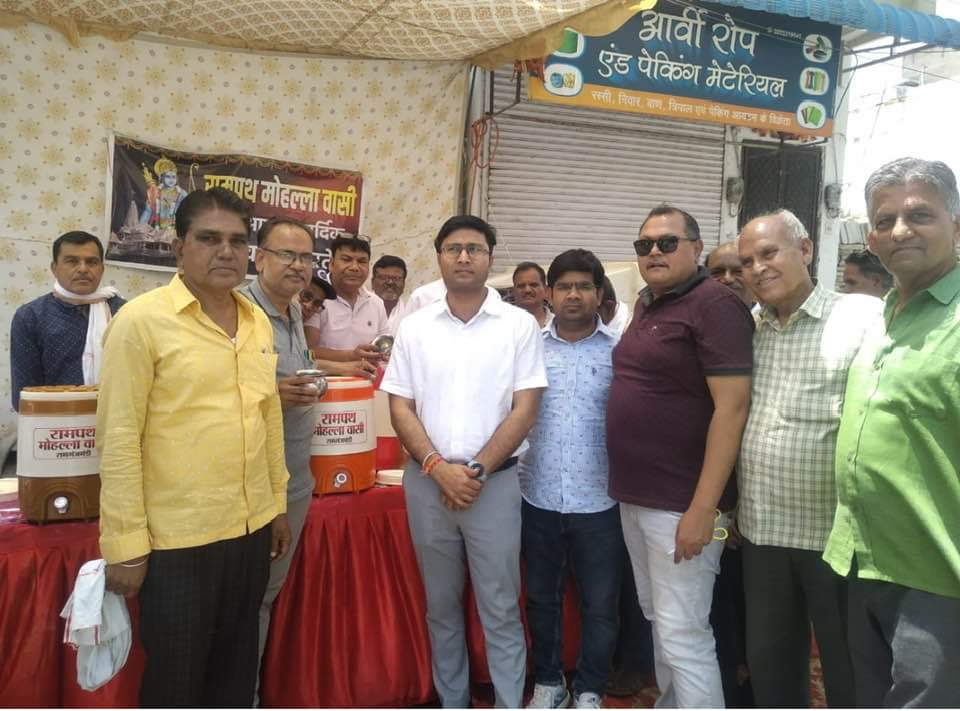 भीषण गर्मी में जहां लोग कूलर ऐसी आदि में दुबके दिखाई दे रहे हैं। 48 डिग्री के तापमान में बाजार नंबर एक के रामपथ वासी भीषण गर्मी में भी घर से बाहर निकाल कर नगर वासियों की सेवा के लिएआगे आए। जो अपने आप में एक मिसाल पेश करता है।