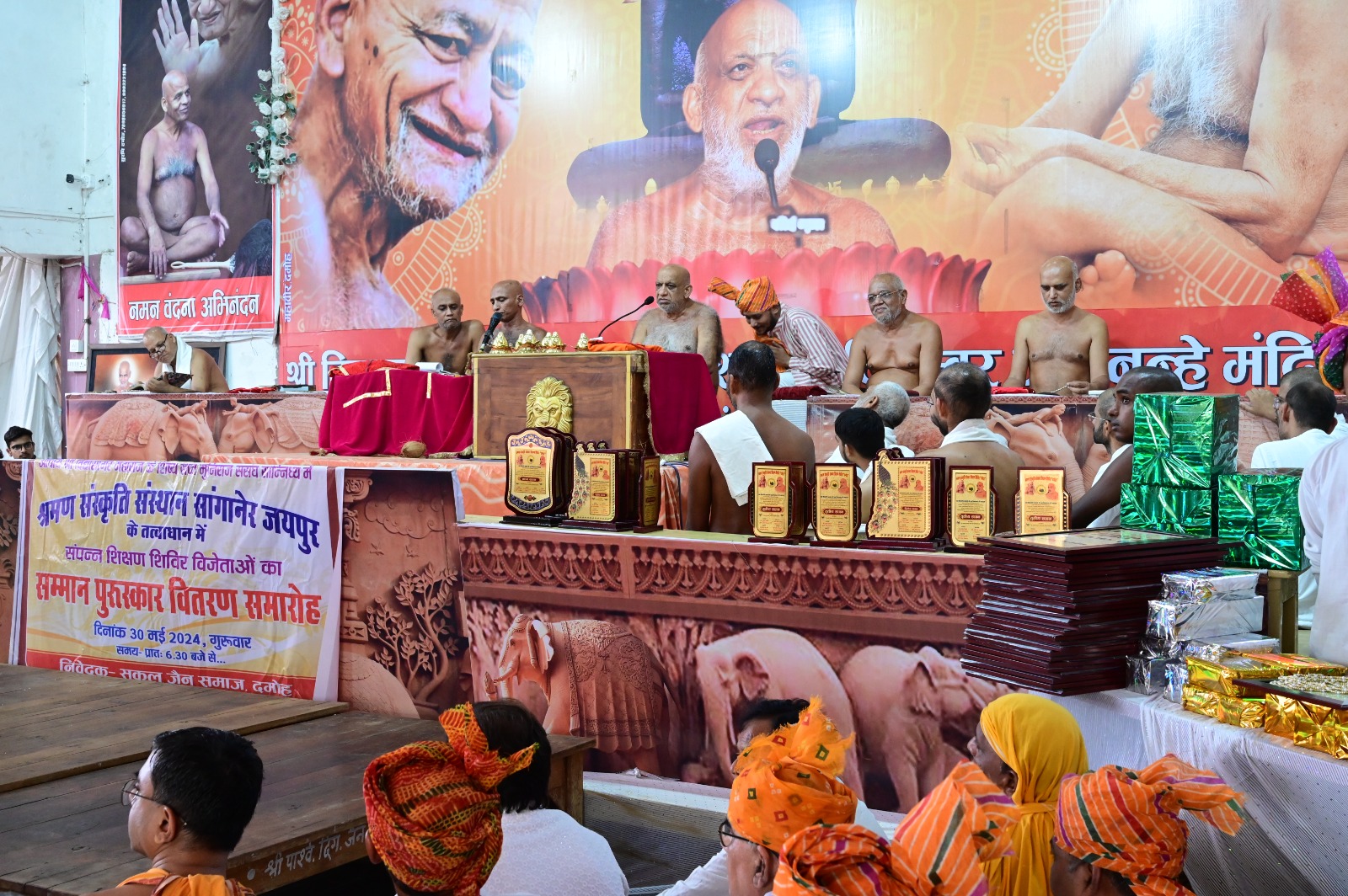 समाधि सम्राट गुरुवर आचार्य विद्यासागर जी महाराज के परम प्रभावक शिष्य निर्यापक मुनि श्री सुधा सागर जी महाराज निर्यापक मुनि श्री प्रसाद सागर जी महाराज निर्यापक मुनि श्री वीर सागर जी महाराज के ससंघ मंगल सानिध्य में नन्हे मंदिर दिगंबर जैन धर्मशाला में 22 मई से 28 मई तक चले श्रमण संस्कृति संस्कार शिक्षण शिविर के समापन पर सम्मान एवं पुरस्कार वितरण समारोह