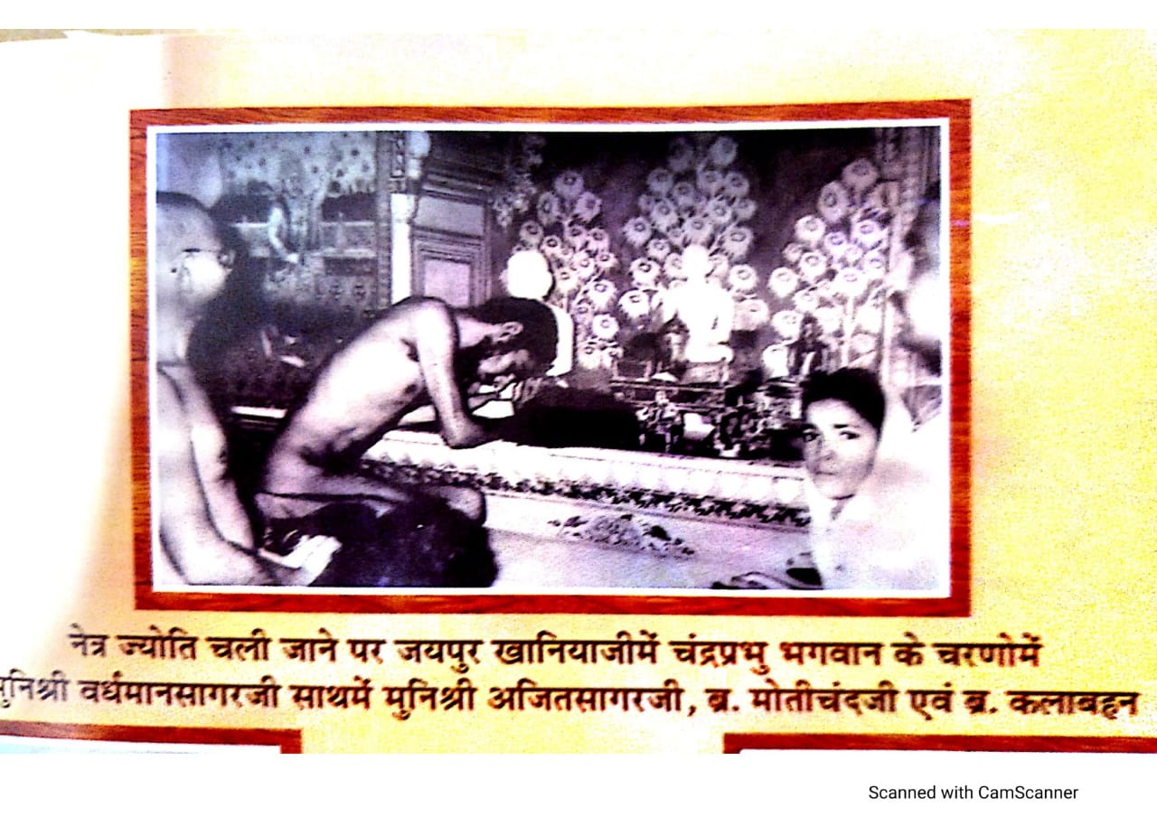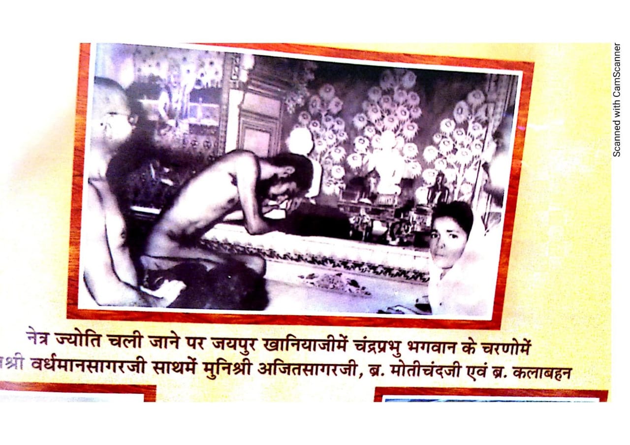 आर्यिका श्री शीतल मति सहित अन्य साधु और पीठाधीश श्री रविंद्र कीर्ति जी वर्तमान में इस घटना के साक्षी हैं। इनके सहित जयपुर के सैकड़ो व्यक्ति आज भी विद्यमान है जिन्होंने इस घटना को अपनी आंखों से देखा है इस चमत्कार को देखा है ।शांति भक्ति की रचना हजारों वर्ष पूर्व पूज्यपाद स्वामी मुनिराज को आकाश गामिनी विद्या हासिल थी, वह आकाश में गमन कर रहे थे ,सूर्य की तेज प्रचंड रोशनी से उनके नेत्र ज्योति चली जाती है तब वह भगवान के समक्ष शांति भक्ति की रचना करते हैं शांति भक्ति की रचना करने से उनकी नेत्र ज्योति वापस आ जाती है। अगर यह घटना उस समय नहीं होती तो किसी को हमारे प्राचीन आगम प्रणीत ग्रंथो में धार्मिक स्रोत पर विश्वास नहीं होता ।आज श्री भक्तामर स्तोत्र की कहानी सभी लोग जानते हैं कि राजा भोज ने जैनाचार्य श्री मानतुंग स्वामी को जेल की 48 कोठरी में बंद कर दिया था तब श्री मानतुंग आचार्य ने भक्तामर स्त्रोत की रचना की, एक-एक श्लोक पूरा होता गया एक-एक ताले टूटे गए 48 काव्य की रचना के बाद सभी ताले टूट गए। जैन धर्म के महत्व को सभी को समझना चाहिए कि आज भी इसमें श्रद्धा और भक्ति से पाठ किया जाए तो उसका लाभ निश्चित मिलता है। जो भी भक्त पंचम पट्टाधीश आचार्य श्री वर्धमान सागर जी के दर्शन करता है देवता प्रदत्त उस नेत्र ज्योति के से जो वात्सल्य मिलता है आशीर्वाद मिलता हैं उस अनुभूति को भक्त जिंदगी भर नहीं भूल पाते हैं।संकलनराजेश पंचोलिया इंदौर से प्राप्त जानकारी संकलन अभिषेक जैन लुहाड़िया रामगंजमंडी 9929747312