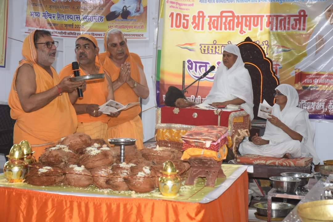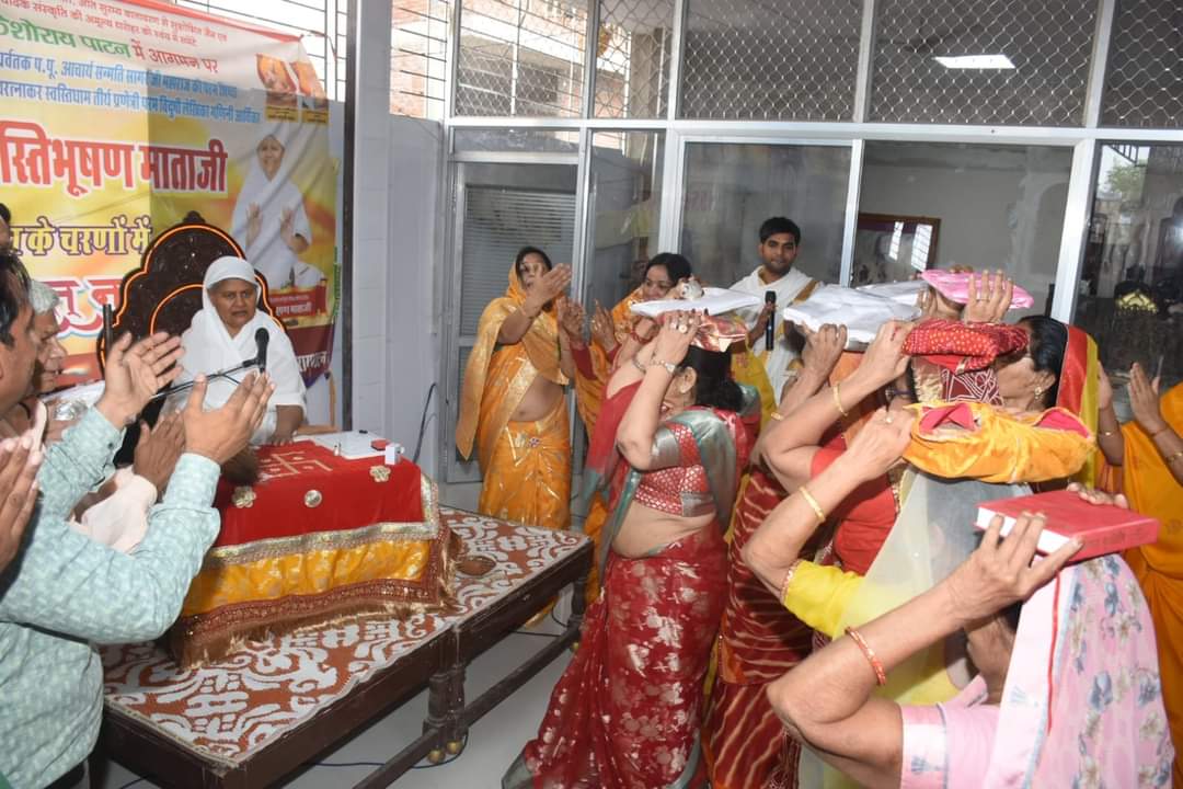 परम पूजनीय भारत गौरव गणिनी आर्यिका 105 स्वस्तिभूषण माताजी ने मंगलवार की बेला में श्रुतपंचमी के विषय में प्रकाश डाला एवं जिनवाणी के संरक्षण पर जोर दिया।