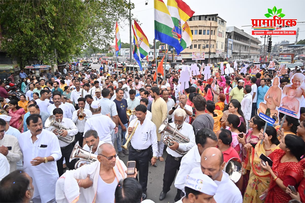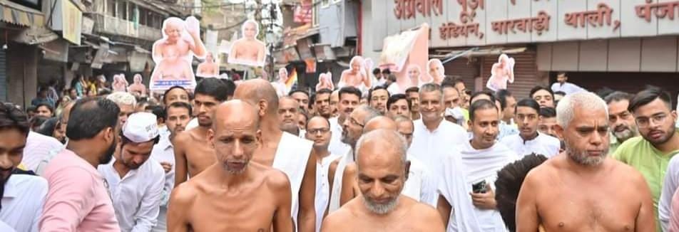 संत शिरोमणि आचार्य गुरुवर 108 श्री विद्यासागर जी महाराज के परम प्रभावक शिष्यगुणायतन प्रणेता, भावना योग प्रवर्तक शंका समाधान के जनक परम वंदनीय परम पूज्य मुनिश्री 108 प्रमाणसागर महाराज संसघ पूज्य मुनिश्री 108 निर्वेगसागर महाराज,पूज्य मुनिश्री 108 सन्धानसागर जी महाराज का भव्य मंगल प्रवेश चौक बाजार भोपाल मध्यप्रदेश में हुआ ।