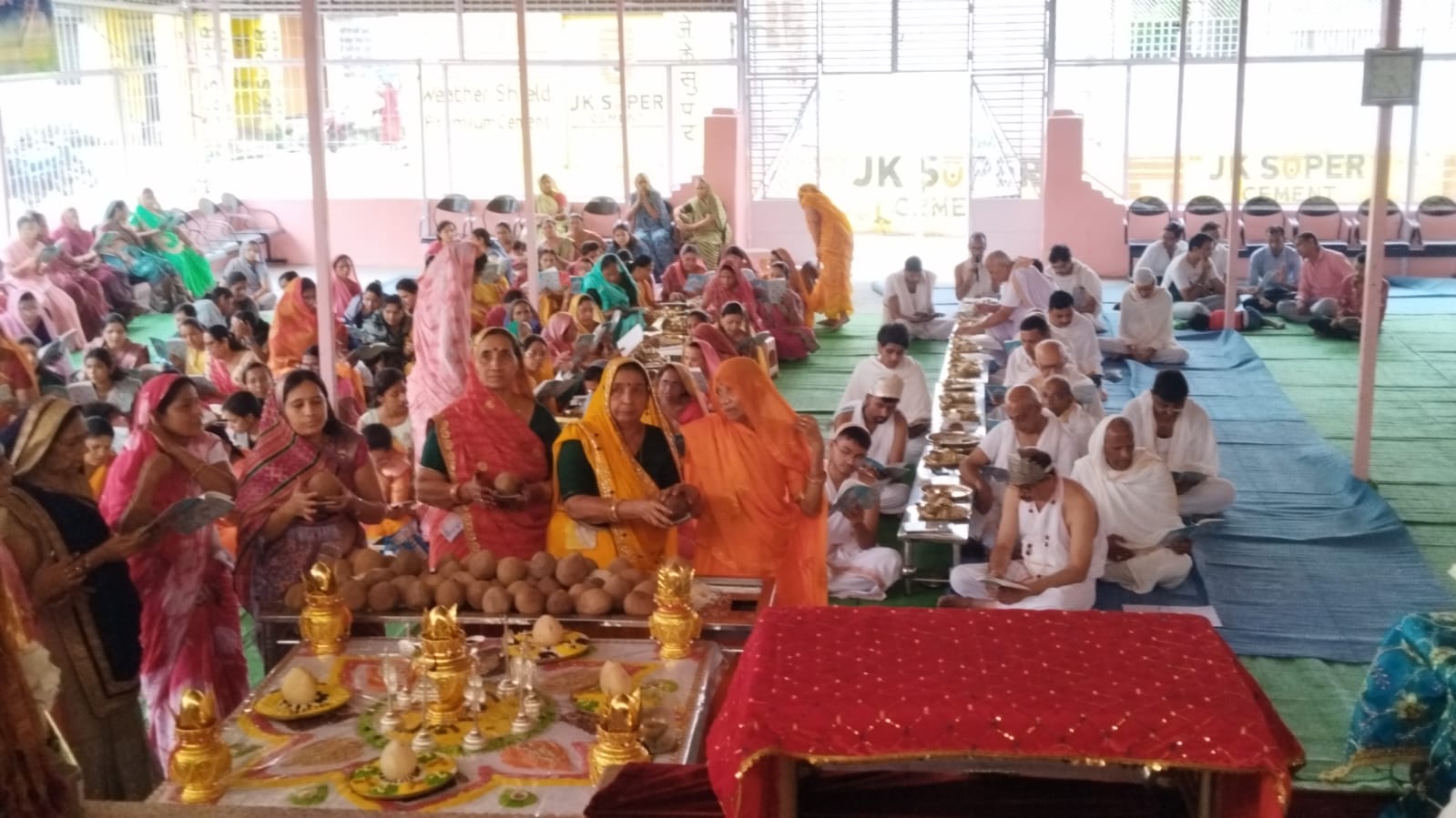 परम पूज्य आयिका105 विज्ञानमति माताजी की शिष्या पवित्र मति माताजी ससंध नौगामा नगर मेंविराजमान है माता जी के सानिध्य में आज विधान आचार्य रमेश चंद्र गांधी वीना दीदी राशिका दीदी के दिशा निर्देशन में पंडाल में नंदीश्वर दीप विधान का आयोजन किया गया