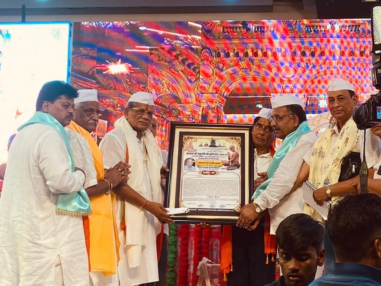 समाज सेवा के लिए जयपुर निवासी पदम जैन बिलाला को आचार्य शांति सागर राष्ट्रीय पुरस्कार से किया सम्मानित पदम जैन बिलाला ने समाज सेवा के लिए राष्ट्रीय पुरस्कार प्राप्त कर समस्त जयपुर जैन समाज को किया गौरान्वित*