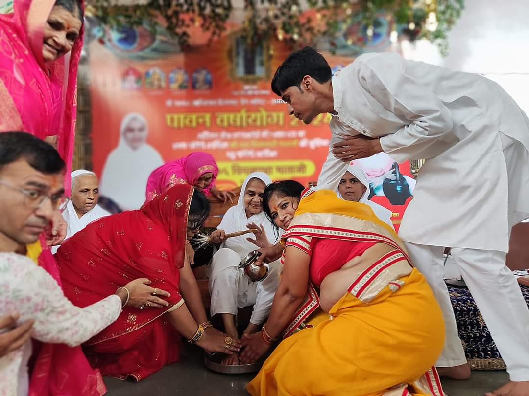 इसी क्रम में गुरु मां के चरणों का पाद प्रक्षालन का सौभाग्य ताराचंद मनीष कुमार कटारिया को प्राप्त हुआ। एवं समस्त आर्यिका माताजी को शास्त्र भेंट करने का सौभाग्य भगवान स्वरूप नीरज कुमार जैन खानपुर वालो को प्राप्त हुआ।