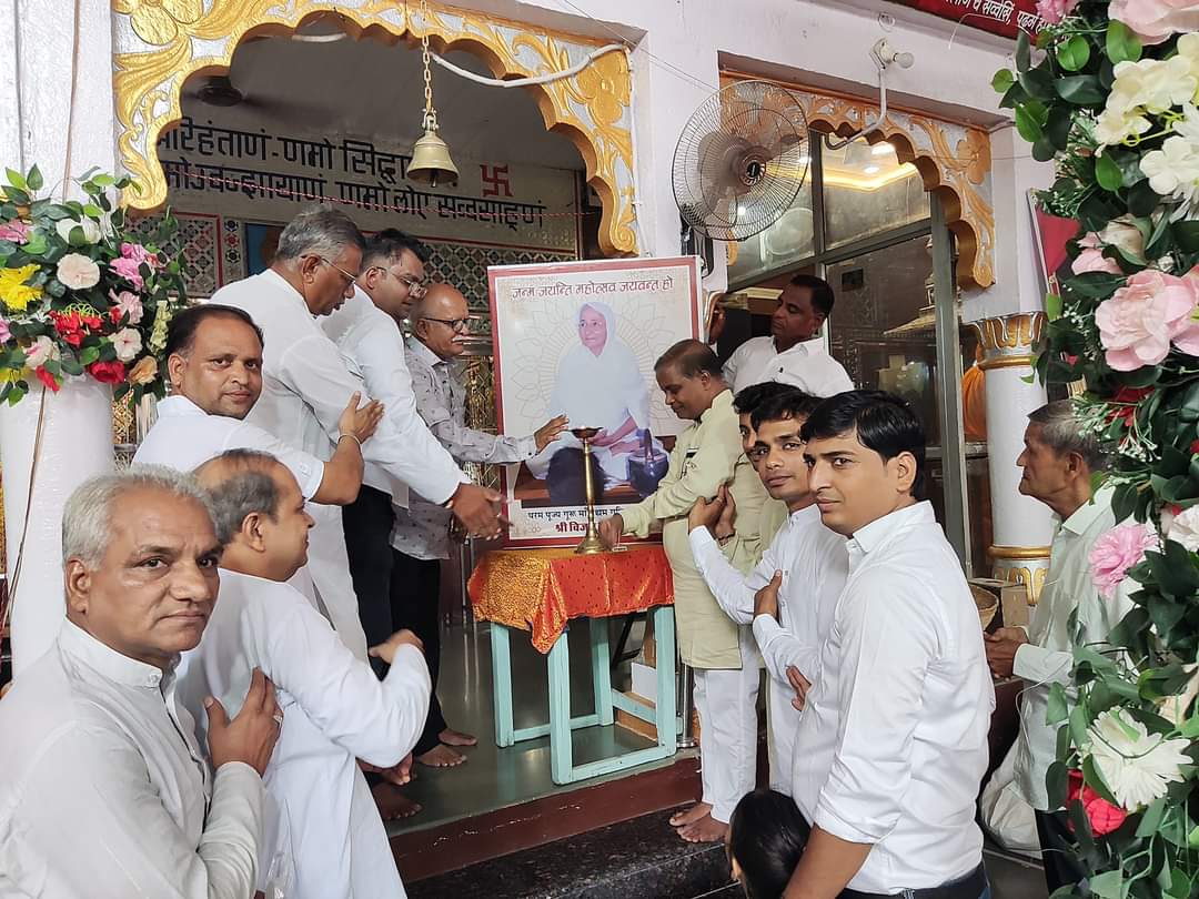 और गुरु मा ने इसकी रचना के विषय में भी बताया। भक्ति भाव के साथ गुरु पूर्णिमा पर्व होने के अवसर पर गुरु मां विजय मति माताजी का अष्ट द्रव्य से भक्ति नृत्य करते हुए पूजन किया गया पूजन सामग्री का कुशल प्रबंधन श्रीमती संगीता लुहाड़िया ने किया