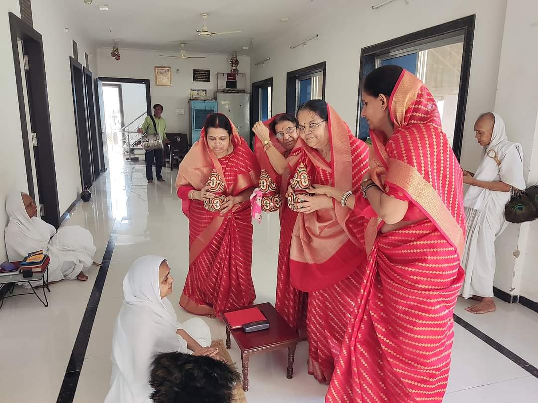 साथ ही समस्त माताजी संघ को वस्त्र भेट किए गणिनी गुरु मां को वस्त्र भेंट करने का सौभाग्य प्रेमलता कटारिया, शोभना सांवला को प्राप्त हुआ,आर्यिका 105 विजयप्रभा माताजी को ललिता विनायका, सुलोचना लुहाड़िया क्षुल्लिका विनीत प्रभा माताजी को संतरा सिंघल, अनिता विनायका, क्षुल्लिका 105 सुमित्रमति माताजी को सुनीता विनायका, अंजलि जैन को प्राप्त हुआ।
