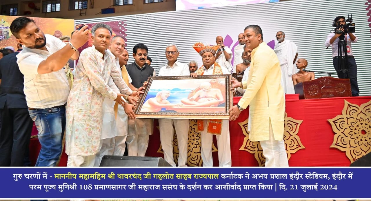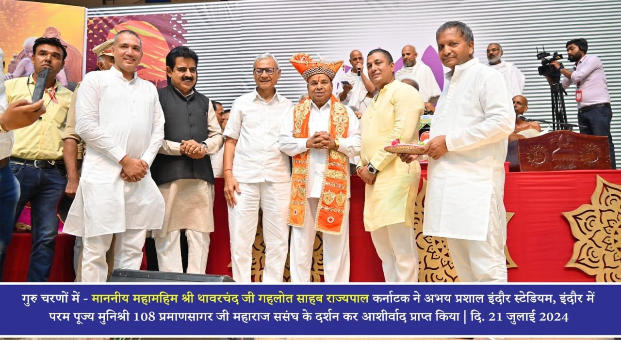 मुनिश्री प्रमाण सागर महाराज वर्षायोग कलश स्थापना समारोह संपन्न कर्नाटक के राज्यपाल थावरचंद गहलोत ने पहुंचकर मुनि श्री का लिया आशीष