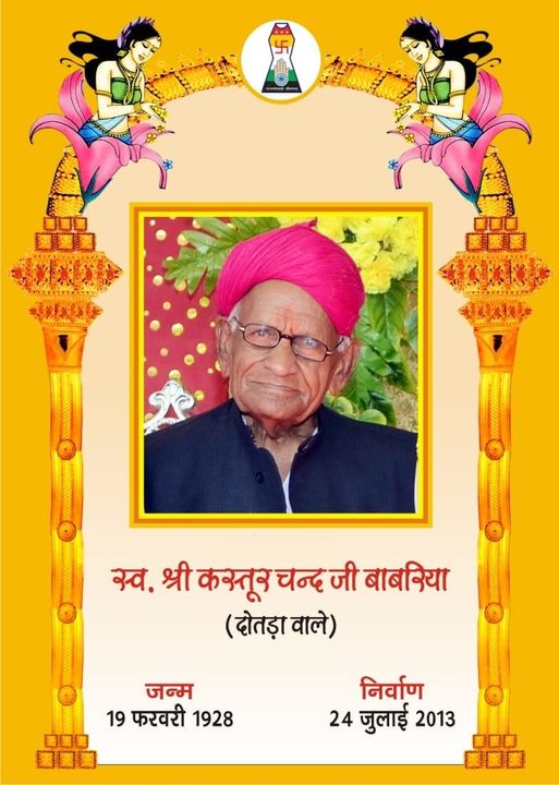 बहुत कम ऐसे व्यक्तित्व होते हैं जो अपने जीवन को समाज और धर्म के लिए समर्पित करते हैं ऐसे व्यक्तित्व थे काका साहब श्री कस्तूरचंद बाबरिया दौतड़ा वाले इनके जीवन कृतित्व पर यदि हम नजर डालें तो इनका जीवन