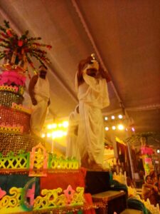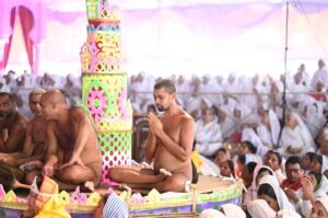 जैन दर्शन की मान्यता के अनुसार कुबेर समवशरण की रचना करता है जिसमें भगवान के उपदेश सुनने के लिए बारह कोठे बनाये जाते है। जिसमें गणधर, मुनिराज, कल्पवासी देवियां, आर्यिकाएं एवं श्राविकाएं, ज्योतिषी, भवनवासी, व्यंतर, देव देवियां, चक्रवर्ती राजा एवं मनुष्य तथा पशु, पक्षी आकर भगवान की सर्वोपयोगी अर्द्धमागधी भाषा में लोक के जीवों के कल्याणार्थ धर्मोपदेश सुनते है। भगवान का मुख चतुर्मुख दिखाई देता है। इन सब प्रक्रियाओं का सांगोपांग चित्रण ज्ञानकल्याणक क्रियाओं के अंतर्गत प्रतिष्ठाचार्य बाल ब्रह्मचारी विनय भैया ने हजारों श्रद्धालुओं के मध्य प्रस्तुत की।