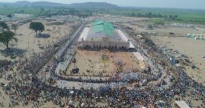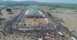 देवाविदेव 1008 भगवान आदिनाथ बड़े बाबा की पावन धरा कुण्डलपुर मे जिनबिम्ब पंचकल्याणक महामहोत्सव के सानंद समापन संत शिरोमणि आचार्य श्री विद्यासागर जी महाराज के आर्शीवाद और स संघ सनिध्य में सिद्ध तीर्थ क्षेत्र कुण्डलपुर में 27 गजरथ द्वारा 9 फेरी के साथ संपन्न हुआ। एक किलोमीटर का एक फेरा जिसमें आगे आगे गुरुदेव फिर महापात्र रथ पर सवार होकर नमोकर महामंत्र का जाप कर रहे थे, जगह-जगह बैंड बाजों की स्वर लहरियों ने शोभा यात्रा में चल रहे जन समुदाय को नाचने पर मजबूर कर दिया। हजारों की संख्या में सड़क के दोनों तरफ उपस्थित श्रावक श्राविका एवं जन समुदाय जय जयकारें लगाते हुए जुलूस में चलते हुए भक्तों का उत्साह वर्धन कर रहे थे, णमोकार के मंत्र की जाप कर रहे। दिव्य घोष, बालिका मंडल की प्रस्तुति सभी श्रद्धालु थिरकते नजर आए। जैन धर्म की झांकियां, क्षेत्रीय समूह नृत्य, जिनशासन प्रभावना, मंत्रोच्चार शुद्धि, नगर शुद्धि करती हुई सौभाग्यवती महिलाएं, लोकांत्रिक देवो द्वारा आह्वान, कमल पर श्री जी का विहारकराती हुई देवियां, 01 स्वर्ण रथ, 06रजत रथ, 20 काष्ठ रथ के द्वारा 9 फेरी आकर्षण का केंद्र बनी। संत शिरोमणि आचार्य श्री विद्यासागर जी महाराज आगे आगे चल रहे थे और उनके पीछे मुनिसंघ, आर्यिका माताजी का सानिध्य मे महाआकर्षक भव्य गजरथ, देश में प्रथम बार ऐतिहासिक, भव्य, अलौकिक प्रभावना करती हुई विशाल शोभायात्रा निकली।