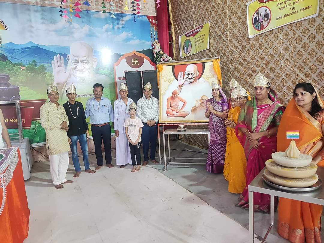 अभिषेक उपरांत आचार्य श्री विद्यासागर महाराज के चित्र का अनावरण एवं चित्र के समक्ष दीप प्रज्वलन किया गया चित्र अनावरण सुमनबाई जंबू रीना जैन सेठिया रावतभाटा के द्वारा हुआ एवम दीप प्रज्वलन चांदमल पुष्पेंद्र बगड़ा सिंगोली द्वारा किया गया इस मंगल बेला में पार्श्वनाथ मंडल विधान किया गया जिसका पुण्य लाभ विजय प्रशांत प्रभव कमलध्वज परिवार भवानीमंडी को प्राप्त हुआ साथ पधारे हुए सभी भक्तों के स्नेह भोज का सोभाग्य भी इन्ही के परिवार को मिला। वही भक्तों की भक्ति देखते हुए बनती थी हर कोई भक्ति में मगन दिखाई दे रहा था श्रद्धा आस्था का सैलाब देखते बन रहा था । बीच बीच में आती बारिश के बीच भी भक्तो की भक्ति में कोई कमी नही थी । विधान उपरांत निर्वाण लाडू चढ़ाया गया । पांडाल में विधान पुण्यार्जक कमलध्वज परिवार द्वारा निर्वाण लाडू चढ़ाया गया वहीं मूलनायक पार्श्वनाथ भगवान की मूल वेदी पर निर्वाण लाडू चढ़ाने का स्वर्ण सौभाग्य गुलाबचंद , संजय, अर्पिता, निशी जैन हरसौरा