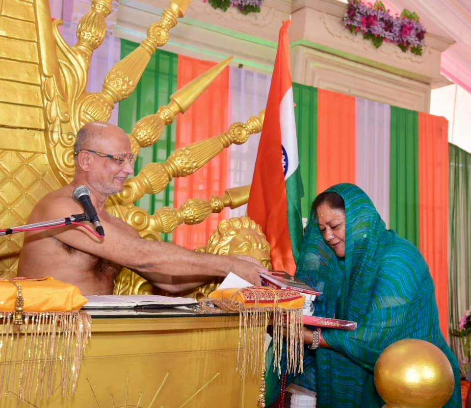 राजस्थान सरकार की पूर्व मुख्यमंत्री वसुंधरा राजे सिंधिया ने लिया राष्ट्र संत भारत गौरव आचार्य पुलक सागर महाराज का आशीष