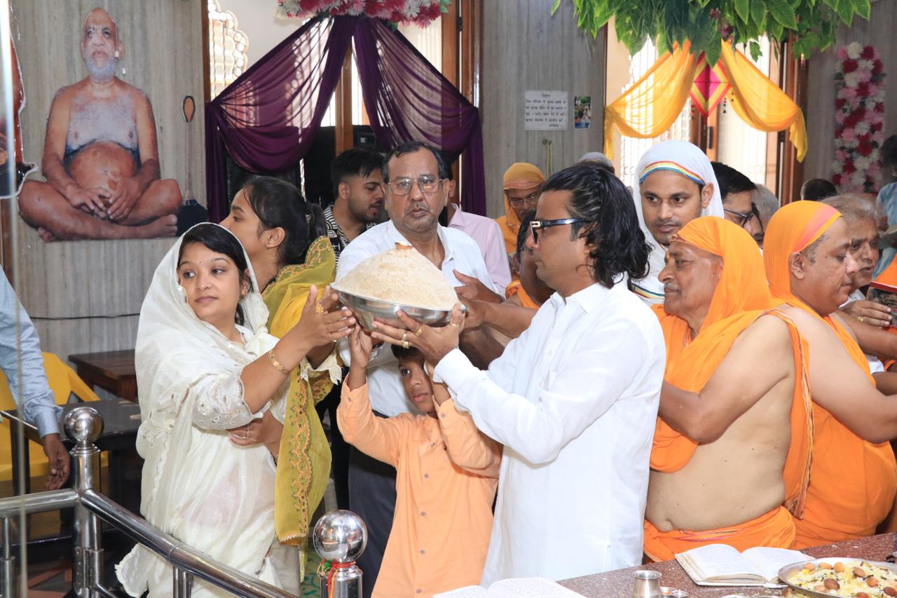 जिसमें उपाध्यायश्रीविहसंतसागर जी महाराज का पडगाहन करने का सौभाग्य शालीमार एनक्लेव के पारस जैन एवं मधु जैन