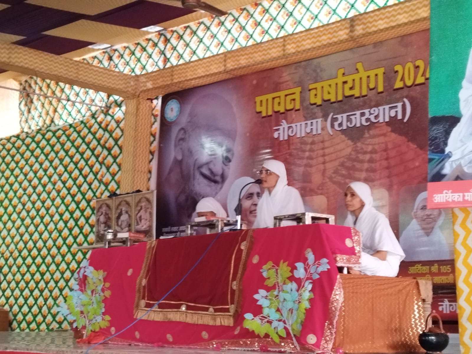 आज परम पूज्य 105 पवित्र मति माताजी के सानिध्य में सर्व समाज की ओर से चातुर्मास पंडाल स्थल में रक्षाबंधन उत्सव एवं मिलन समारोह का आयोजन किया गया। इस अवसर पर विशिष्ट अतिथि के रूप में राष्ट्रीय स्वयंसेवक जिला प्रचारक गोविंद भाई साहब उपस्थित थे । दिगंबर जैन समाज नौगामा की ओर से पधारे हुए अतिथियों का शब्द सुमन से स्वागत अभिनंदन पंडित रमेश चंद्र गांधी द्वारा किया गया।