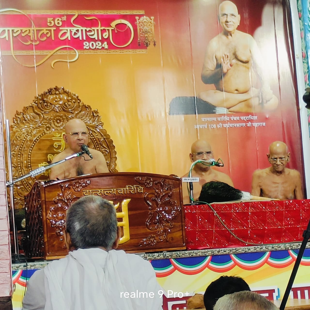 आचार्य श्री ने घोषणा की कि 12 अक्टूबर को प्रथमाचार्य श्री शांति सागर जी महाराज जी जिस सिंहासन पर बैठते थे ,जो मयूर पीछी उन्होंने धारण की ,जो कमंडल का उपयोग करते थे, जिस माला से वह मंत्र जाप कर करते थे और जिस ग्रंथ का वह स्वाध्याय करते थे वह डायरी और ताम्रपत्र पर जो जिनवाणी उनकी प्रेरणा से अंकित हुई उसका पारसोला में भव्य प्रवेश संघ सानिध्य में होगा। आचार्य श्री के प्रवचन के पूर्व मुनि श्री पुण्य सागर जी महाराज ने आचार्य श्री शांति सागर जी का गुणानुवाद कर अनेक संस्मरण बताएं।ऋषभ पचौरी,जयंतीलाल कोठारी, प्रवीण जैन अनुसार इसके पूर्व प्रात काल