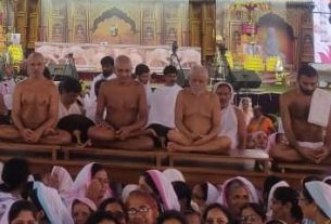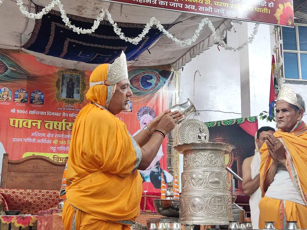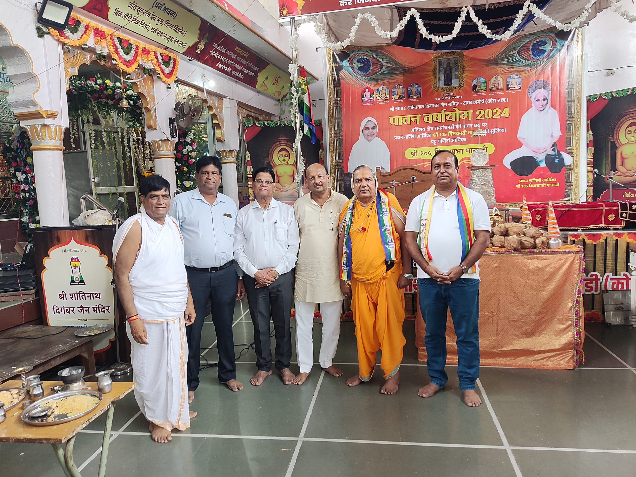 क्षुल्लिका 105 सुमैत्रीश्री माताजी के सानिध्य में नवग्रह शांति नाथ महामंडल विधान संपन्न हुआ जिसमें अपनी संगीत लहरियों से वातावरण को कोटा से पधारे श्रीमान शिखरचंद पाटोदी ने वातावरण को भक्तिमय आयोजन के क्रम में सर्वप्रथम श्री जी को विराजमान किया गया एवं अभिषेक किया गया शांति धारा का उच्चारण पूज्य गणिनी गुरु मां के श्री मुख से हुआ।