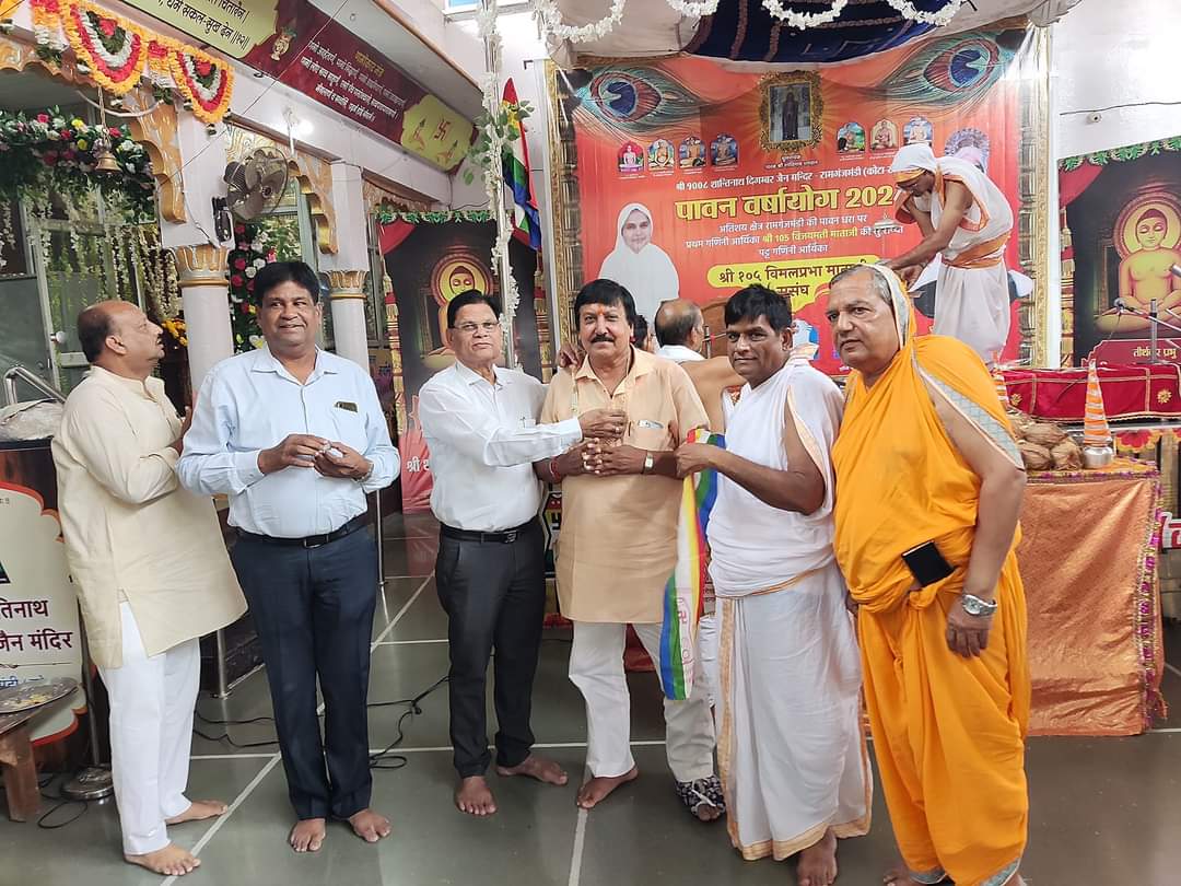 इसके उपरांत जयपुर से पधारे हुए श्रीमान कमल जैन, संगीतकार शिखरचंद पाटोदी का समाज की ओर से अध्यक्ष दिलीप
