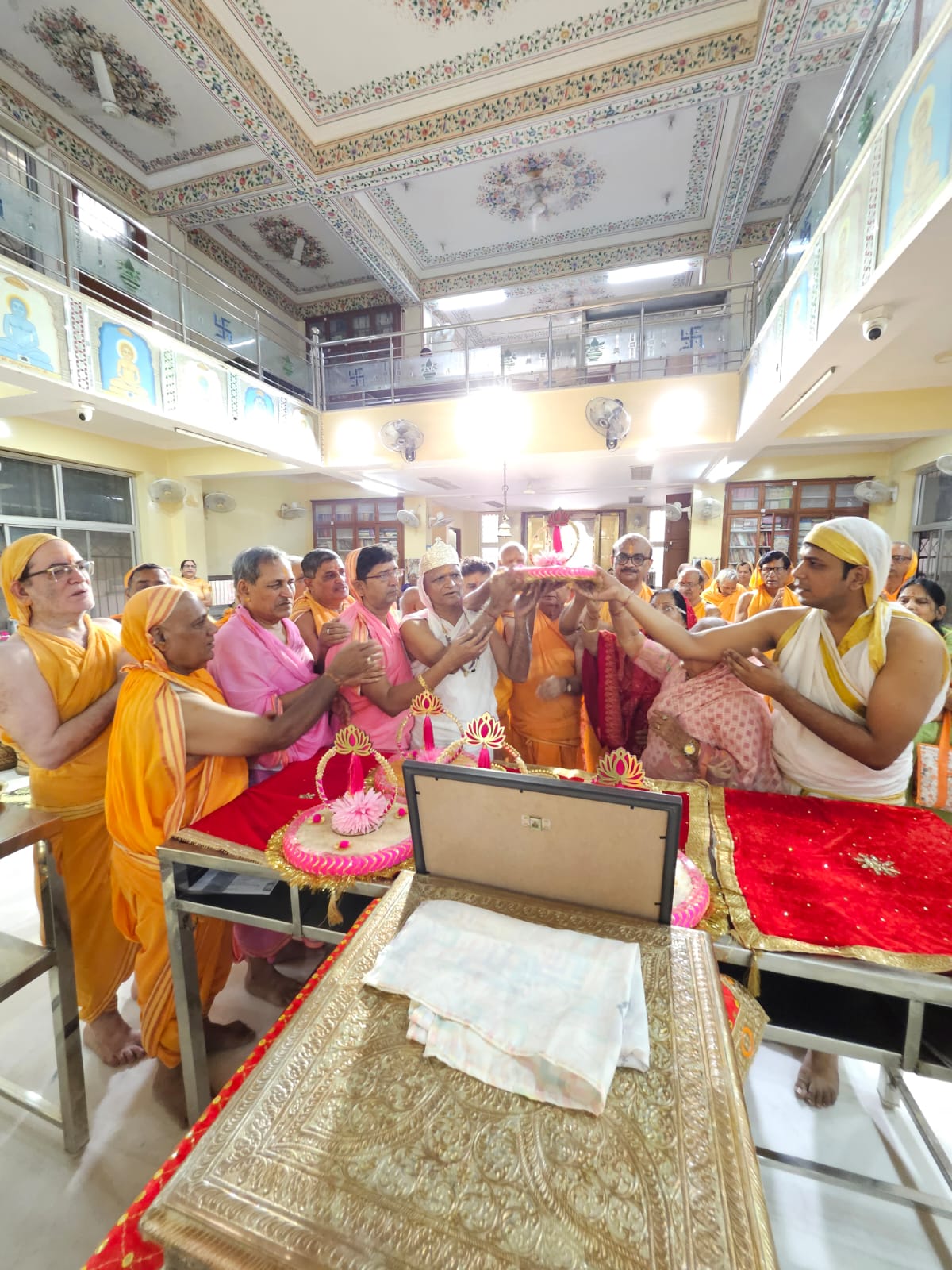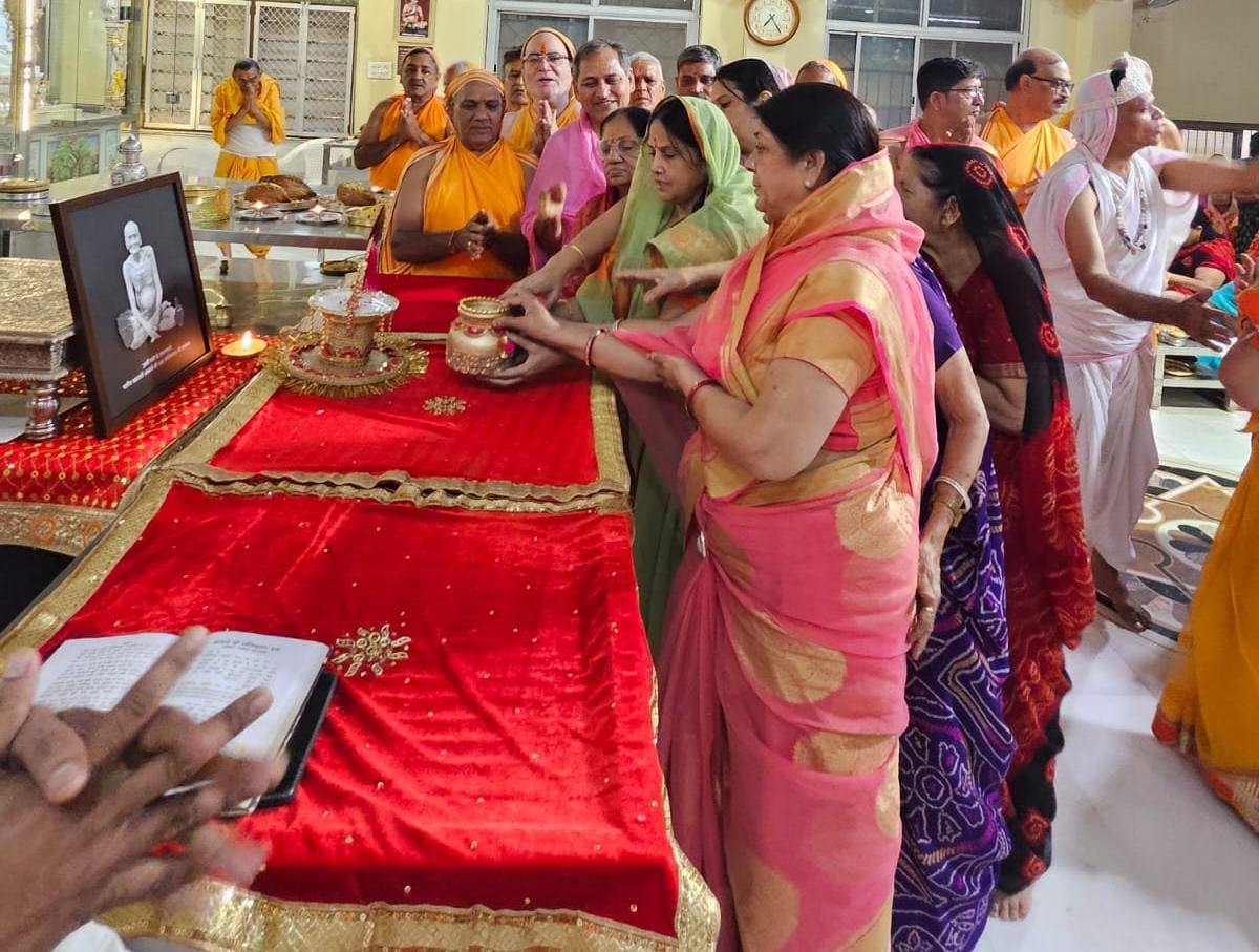 सुनंदा अजमेरा के मधुर कंठ से भक्ति के साथ पूजा की गई ,सभी मांगलिक क्रियाएं विधानाचार्य अजित शास्त्री ,पंडित विमल शास्त्री द्वारा कराए गई।