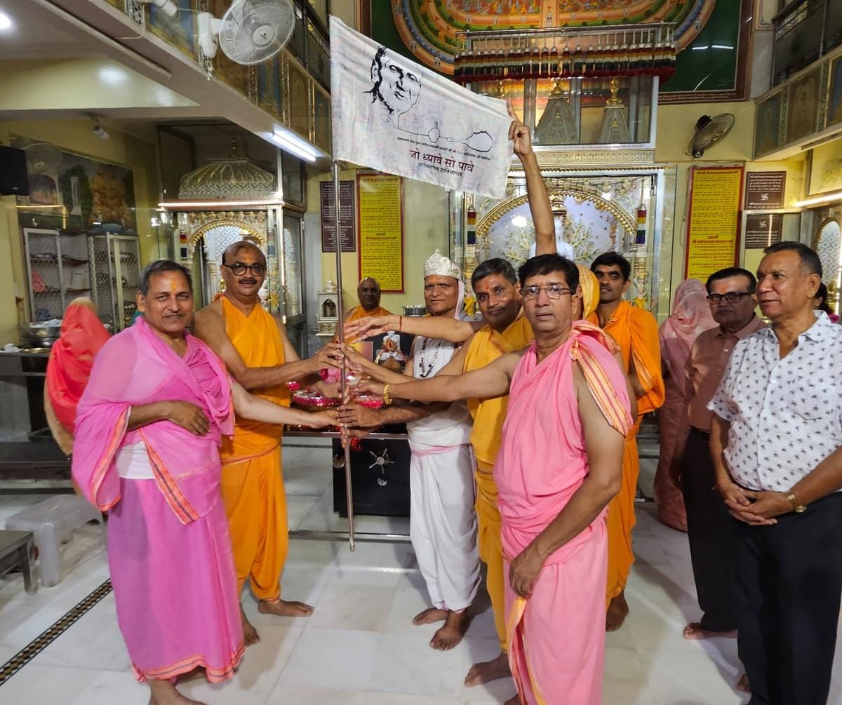 अंत में सभी ने मिलकर आचार्य श्री का मंगल ध्वज स्थापित किया गया।