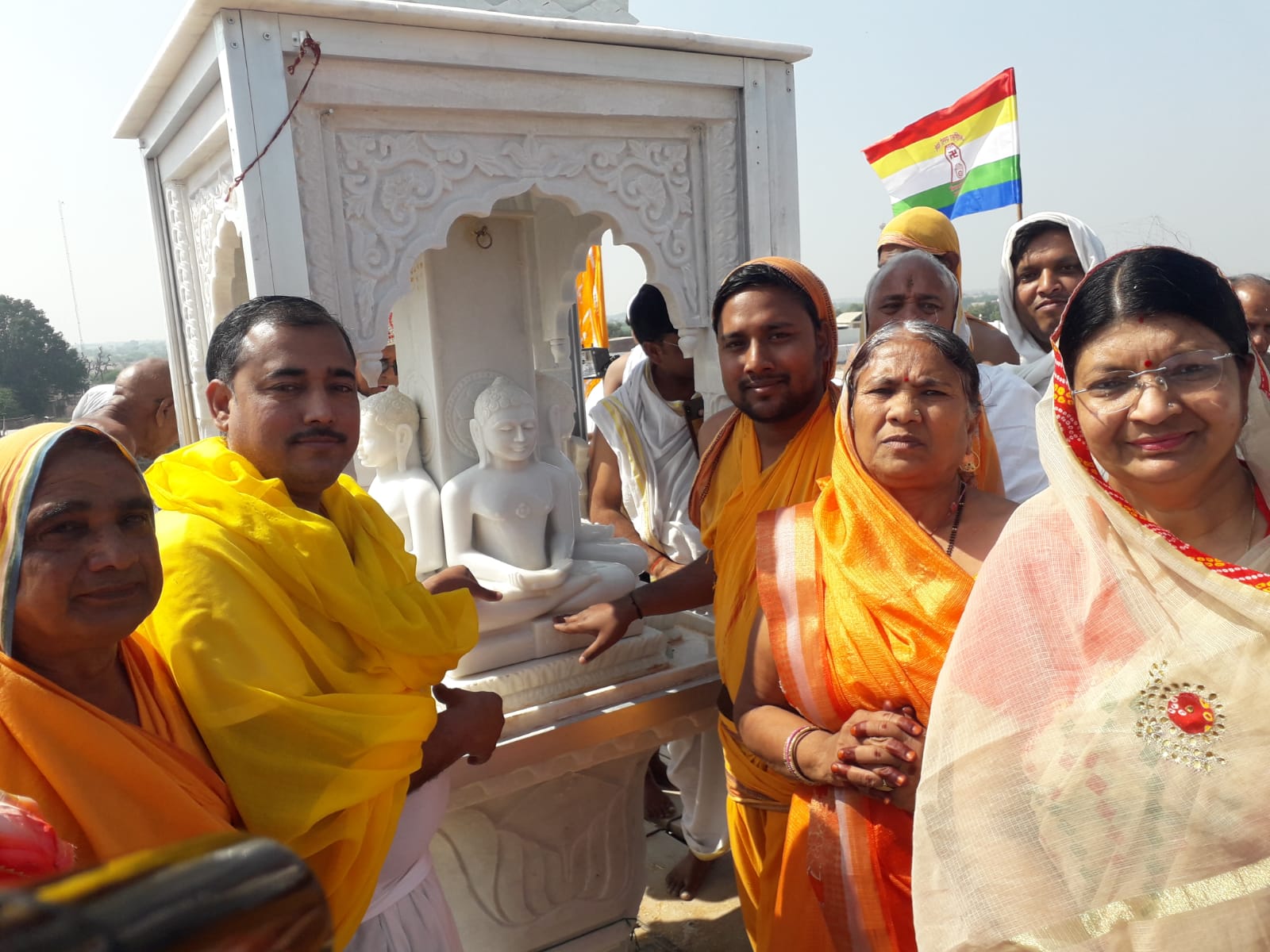 आचार्य 108इंन्द्रनंदी महाराज के पावन सानिध्य में चल रहे श्रीमज्जिनेंद्र मानस्तंभ प्रतिष्ठा जिन बिम्ब स्थापना महोत्सव में नवनिर्मित मानस्तंभ में चारों दिशाओं में किए श्री जी विराजमान