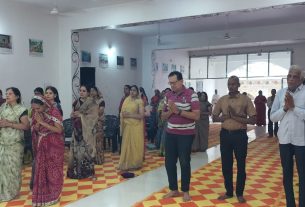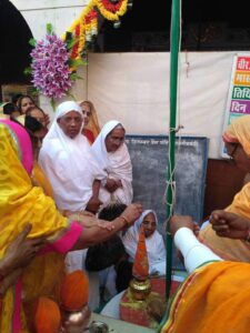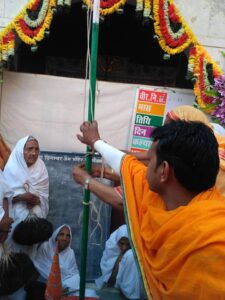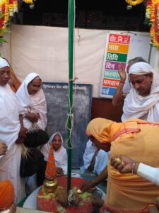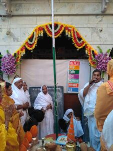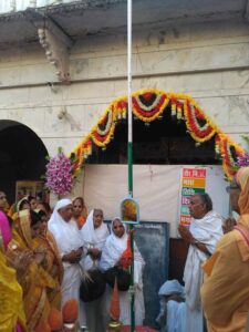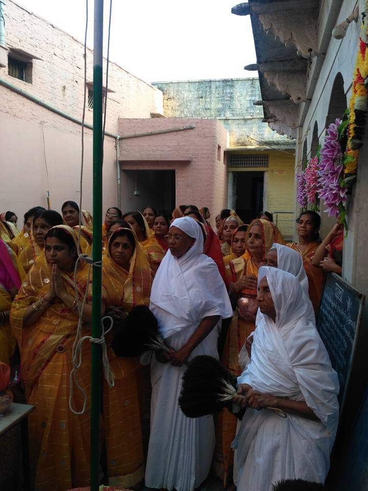 घट यात्रा सकलिकरण ध्वाजारोहण के साथ सिद्धचक्र महा मंडल विधान आर्यिका श्री 105 संगम मति माताजी के सानिध्य मे शुरू 5 मार्च 2017रामगंजमंडी मै अभूतपूर्व उत्साह देखने को मिला रामगंजमंडी अनन्त कोटि पुण्य के उदय से आज अष्टानिका पर्व के अंतर्गत आर्यिका माताजी के सानिध्य मे सिद्ध चक्र महामंडल विधान प्रारंभ हुआ था। प्रातः कालीन आर्यिका माताजी संघ सानिध्य मे घटयात्रा निकाली गयी उसके उपरांत पंडित उदयकुमार शास्त्री कोटा को आचार्य निमंत्रण किया और प्रतिष्ठाचार्य के रूप मे ध्वजारोहण की क्रिया सम्पन्न करवाई और मंडप शुद्धि पात्र चयन संकलिकरण हुआ एवम महुआ से आये संगीत कार ने भक्ति रस से समा बाँधा विधान मे 8 अर्घ समर्पित किए गए और आर्यिका माताजी की दिव्य देशना सुनने को मिली एक रिपोर्ट अभिषेक जैन लुहाड़िया रामगंजमंडी।