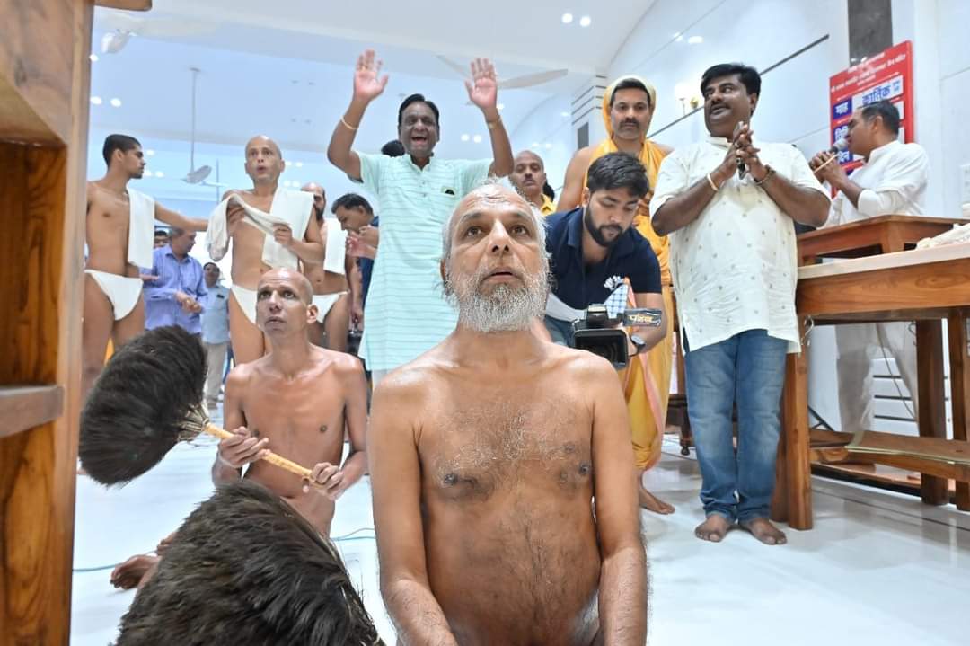 इस अवसर पर मुनि श्री निर्वेग सागर महाराज तथा मुनि श्री संघान सागर महाराज सहित समस्त क्षुल्लक विराजमान थे।धर्म प्रभावना समिति के मीडिया प्रभारी राहुल जैन प्रवक्ता अविनाश जैन विद्यावाणी ने बताया मुनि संघ का मंगल विहार प्रातःकाल मोहताभवन से क्लर्क कालोनी की ओर हुआ।उत्साह के साथ क्लर्क कालोनी तथा श्रद्धालुओं ने मुनिसंघ का ढोल धमाके तथा गाजे बाजे के साथ महिलाओं ने सिर पर मंगल कलश धारण कर मुनिसंघ का अभिनंदन किया इस अवसर पर विधायक रमेश मेंदोला सहित महोत्सव अध्यक्ष नवीन आनंद गोधा अध्यक्ष अशोक डोसी नवरत्न रमेशचंद्र निर्वाणा महामंत्री हर्ष जैन सहित बड़ी संख्या में श्रद्धालु उपस्थित थे। प्रातःप्रवचन एवं आहार चर्या यही से संपन्न हुई।तथा सांयकाल शंकासमाधान कार्यक्रम भी यही से संपन्न हुआ।