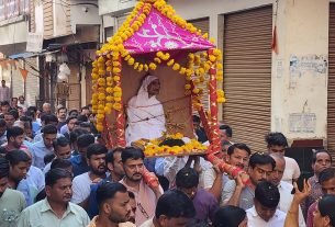 आरके कम्युनिटी में आशीर्वचन सभा के बाद आचार्य श्री संघ मंगल विहार करते हुए जोंगिया का नाडा पहुंचे। आरके हाउस में आरके मार्बल परिवार के कंवरलाल, अशोक कुमार, सुरेश कुमार, विमल कुमार, सुशीला पाटनी, शांता पाटनी, सारिका पाटनी ने परिवार सहित आचार्य श्री के पाद प्रक्षालन कर आशीर्वाद लिया।