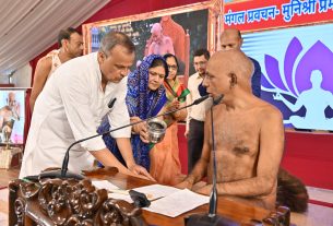 उपस्थिति दर्ज कराई। मुनिश्री आदित्य सागर महाराज ने प्रवचन में जैन धर्म के गर्भ कल्याणक महत्त्व को समझाते हुए धर्म की महिमा और आत्मशुद्धि की ओर प्रेरित किया। इस अवसर पर श्री चंद्रप्रभु दिगंबर जैन मंदिर में गौतम स्वामी के स्टफिक के चरण जिनवाणी मंदिर में स्थापित करने की घोषणा की गई। गुरूदेव ने कहा कि इससे उर्जा का नया संचार होगा और दर्शनार्थियो को विशेष पुण्य प्राप्त होगा ।इसके पुण्यार्जक कमला जैन,लोकेश—डा.दिप्ती जैन सीसवाले परिवार रहा।