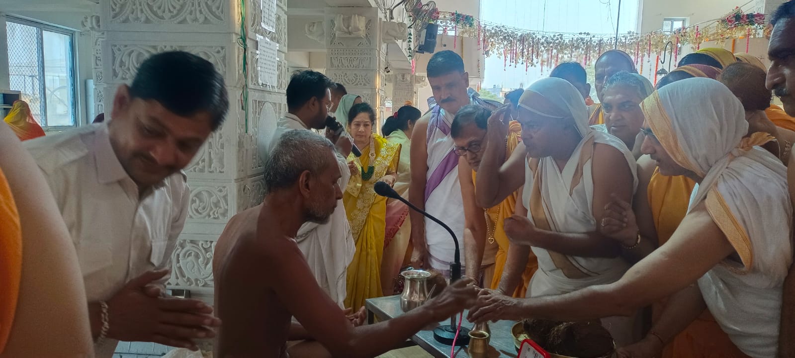 अध्यक्ष जम्बू जैन सर्राफ ने बताया कि कि इस अवसर पर शान्तिधारा व भक्तामर विधान महावीर सिद्धार्थ मित्तल परिवार राजेन्द्र हुकम काका परिवार, विवेक जी ठोरा परिवार द्वारा की गई निदेशक हुकम जैन काका ने बताया कि 108 इन्द्र-इंद्राणियों के द्वारा श्री इंद्रध्वज महामंडल, विधान में मानुषोत्तर मेरु स्थित पर्वत पूर्वदिक् स्थित जिनालय संबंधी 4 जिनालय की पूजा के माध्यम से नंदीश्वर द्वीप की चारों दिशाओं 13, 13 के हिसाब से 13 गुण 4 = कुल बावन जिनालय 52 द्वीप के माध्यम से इंद्र परिवारों द्वारा 56 आकर्षक ध्वजाये जिन चैत्यालयों पर चढ़ाई गईसंसारी जीव पूरा जीवन दुसरो के लिए जीता है स्वंय के लिए जीए तो कल्याण हो जाए मोह के कारण आत्मा में रुचि नहीं जग रही है पाप का फल नरक है पाप करोगे तो नर्क में जाना ही पड़ेगा रोटी कपडा मकान जीवन की आवश्यकता है परन्तु इसके अतिरिक्त जो भी संसार के अन्य साधन इकट्ठे कर रखे है वो पाप के ही कारण है फालतू में बिजली पंखा चलाना ये सब अनर्थ दण्ड में आएगा इसका पाप लगेगा जितना परिग्रह कम होगा उतना मन हल्का रहेगा वर्तमान में जीवन लोन पर चल रहा है जबकि सबसे बडा दुख कर्ज है कर्ज नहीं चुकने पर आदमी चिंता में व्यथीत होता रहता है संसारिक वस्तुओं से कभी सुख मिलने वाला नहीं संसार दुखों से भरा पड़ा है जन्म से ही दुख है सभी जीव रोते हुए ही आते है जीवन सुधारो समाधिमरण के नियम लेवो प्रतिदिन छः आवश्यक पालना अनिवार्य है आत्म कल्याण करो इसमें ही जीवन का कल्याण है और इसमें ही सुख है I