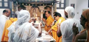 बुधवार को श्री 1008 चंद्राप्रभु दिगम्बर जैन मंदिर,कटरा इतवारी खां,नाई की मंडी,आगरा में श्री चंद्रप्रभु भगवान का मोक्ष कल्याण बड़ी धूमधाम से मनाया गया। प्रातः 07:00 बजे भगवान चंद्रप्रभु का अभिषेक एव शांतिधारा की गई| इसके बाद भक्तो द्वारा निर्वाण लड्डू चढ़ाया गया। मंदिर जी में भक्तो द्वारा संगीतमय पूजन किया गया। और सायकालः 7:00 बजे से भगवान की मंगल आरती की गई | बड़ी संख्या में महिला और पुरुष शामिल हुए। शुभम जैन ने बताया की इस अवसर पर निर्मल मोठ्या,अजीत रावका, पन्नालाल बैनाड़ा,राजेश सेठी, मदनलाल बैनाड़ा,राजेश बैनाड़ा, सुरेंद्र बैनाड़ा,वीरेन्द्र मौठया, अमित गोधा,अंकुर कासीवाल, अशोक रांवका,विभू बैनाड़ा, अनिल जैन,मीडिया प्रभारी शुभम कासलीवाल,ऊषा मोठया,रेखा मोठया,सुनीता रांवका,सीमा बैनाड़ा,मोनिका बैनाड़ा,पायल कासलीवाल,बुलबुल कासलीवाल समस्त कटरा इतवारी खां नाई की मंडी के लोग बड़ी संख्या में उपस्थित रहे।