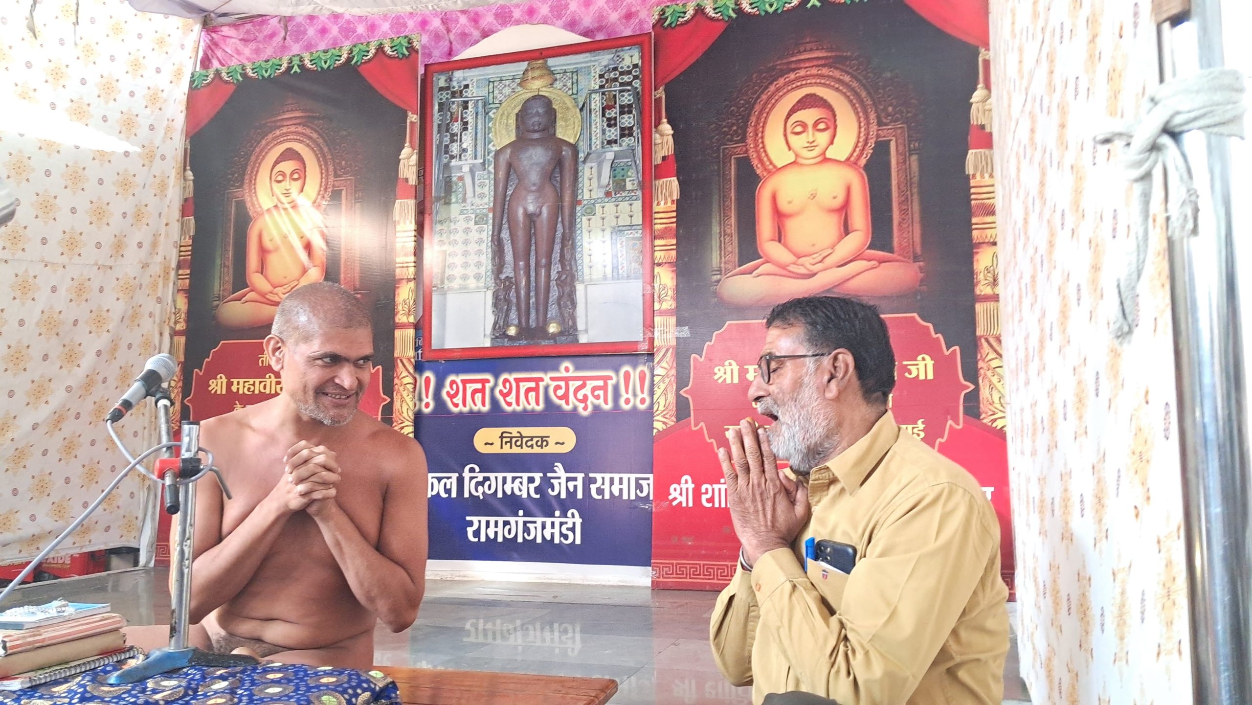 रामगंजमंडी के बाजार नंबर1 में स्थित श्री दिगंबर जैन मंदिर में संत शिरोमणि आचार्य श्री 108विद्यासागर जी महाराज के शिष्य एवम आचार्य श्री108 समय सागर महाराज के आज्ञानुवृति शिष्य मुनिश्री 108 नीरज सागर महाराज ने धर्म सभा मे प्रवचन देते हुए कहा कि इंसान ने साधनों को धर्म मान लिया है।जबकि धर्म आत्मा का स्वभाव है हम अभी तक साधनो में ही सीमित है धर्म तक पहुंचे ही नहीं। धर्म कभी भी कर्मों का बंध नहीं कराता है। धर्म से कर्मों का बन्ध टूटता है। श्री आदिनाथ जैन श्वेतांबर श्रीसंघ अध्यक्ष राजकुमार पारख ने बताया कि प्रवचन में बोलते हुए मुनि श्री 108 नीरज सागर ने कहा कि संसार में सुख होता तो”तीर्थंकर भगवान संसार छोड़कर क्यों जाते”संसार में मिले सुख क्षणिक व काल्पनिक है। दुख में थोड़ी कमी आ जाए तो आदमी उसे सुख समझ लेता है संसार में दुखी जीव को धर्म सुख देता है।