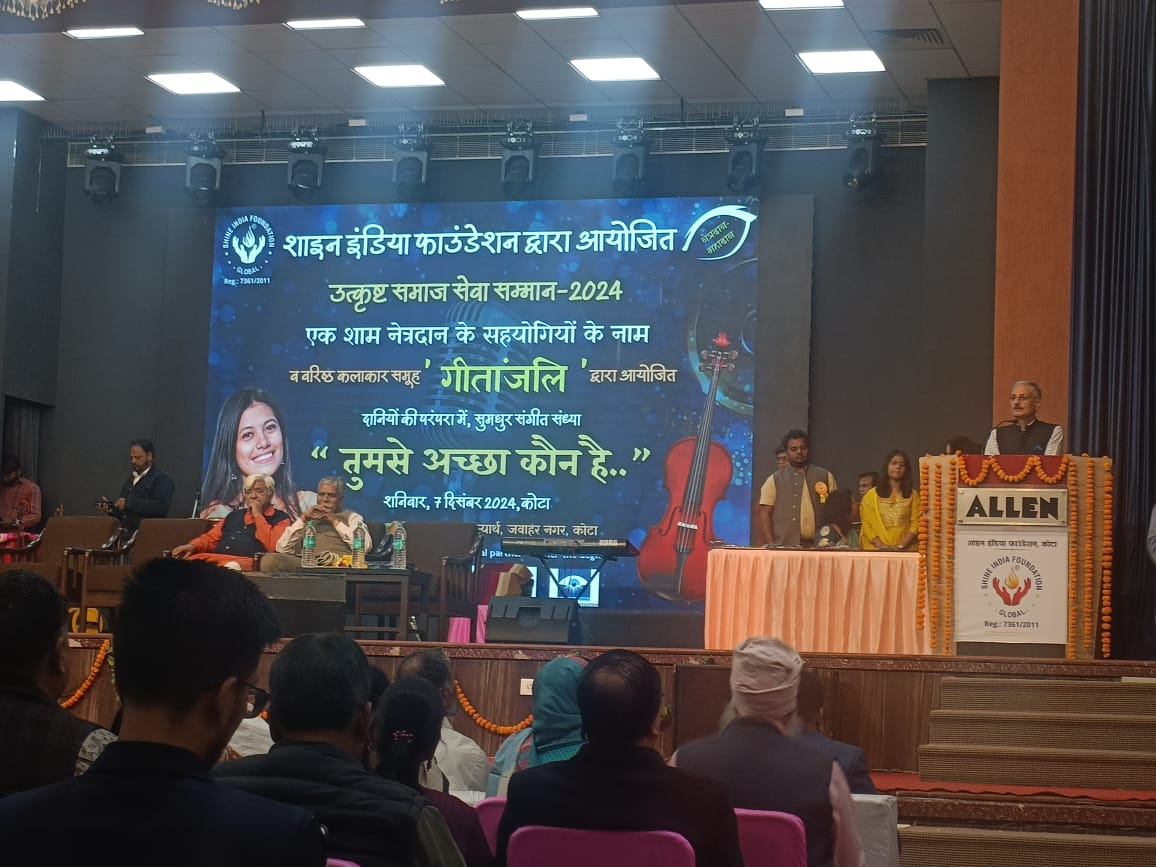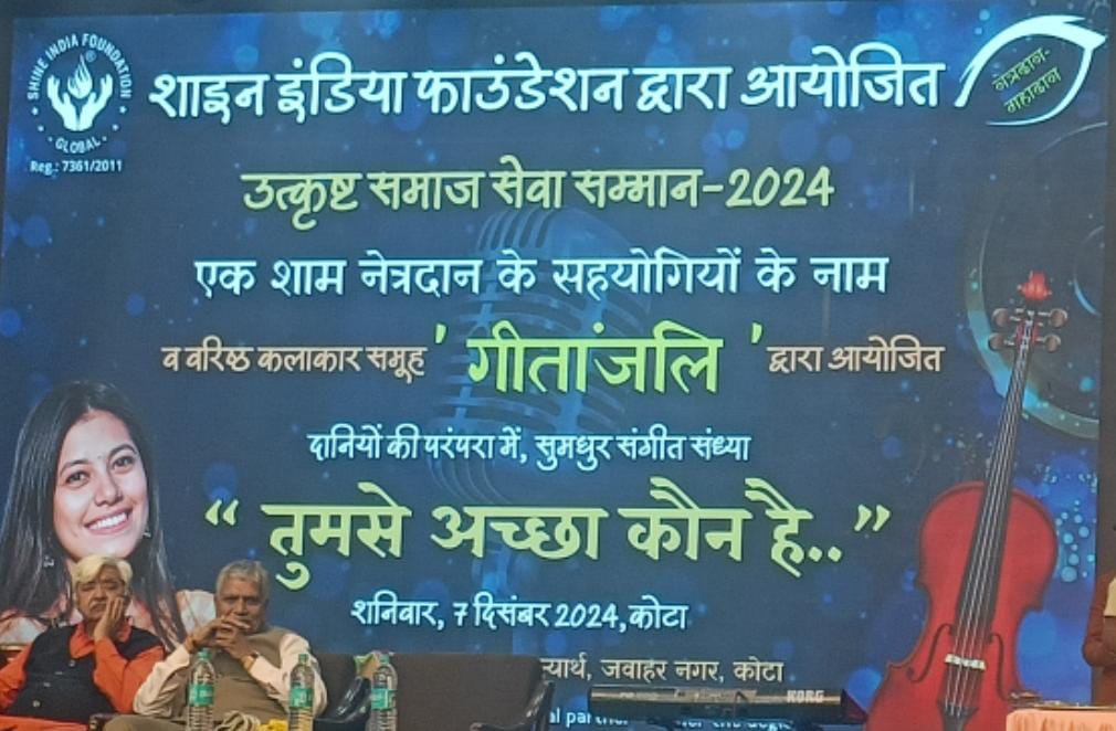 शाइन इंडिया फाउंडेशन द्वारा आयोजित 2024 उत्कृष्ट समाज सेवा सम्मान तुमसे अच्छा कौन हैका आयोजन किया गया, नैत्रदान में उत्कृष्ट सेवा प्रदान करने वाले सभी ज्योति मित्रो का