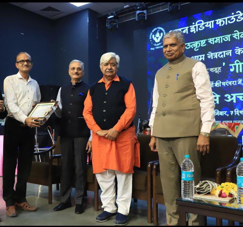 भारत विकास परिषद के संजय पतीरा को मिला शाइन इंडिया फाउंडेशन द्वारा नेत्रदान के सराहनीय कार्य हेतु सम्मान*