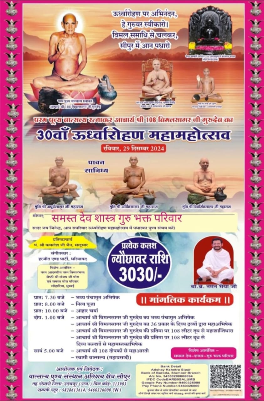 अपना मंगल आशीर्वाद प्रदान किया है एवम प्रमुख सानिध्य राष्ट्रसंत आचार्य श्री 108 गुणधरनंदीजी महाराज का प्राप्त हो रहा है इस महोत्सव मे अग्निकुमार इंद्र श्री अतिशकुमार रतनलाल सा खवडे प्रतिभा आतिशकुमार खवडे इनकी और प्रतिमा निर्माण मे भी सहयोग प्रदान किया है