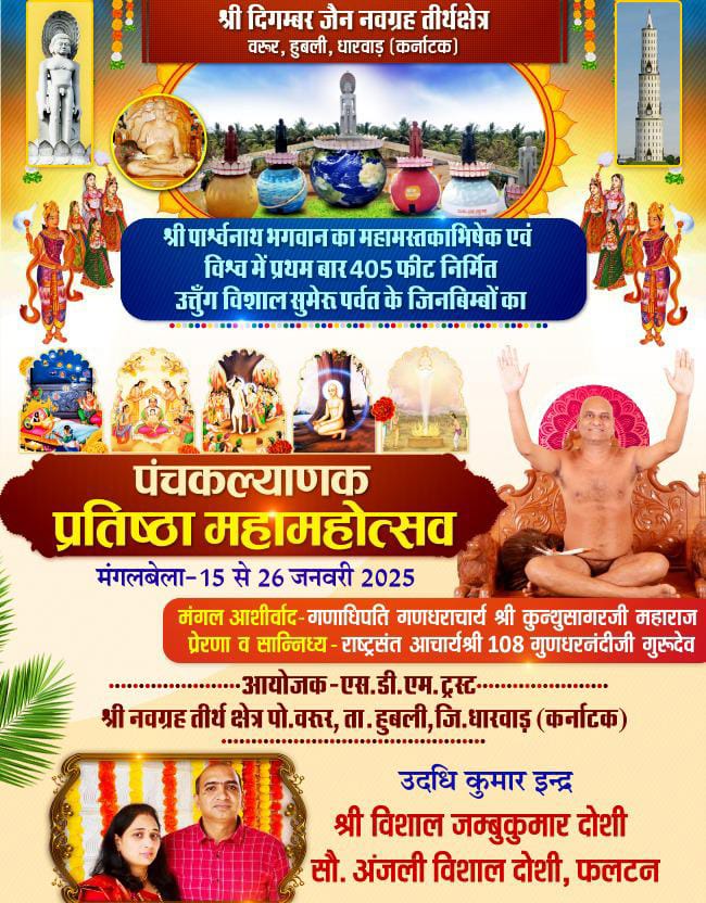 एस डी एम ट्रस्ट नवग्रह तीर्थ क्षेत्र वरुर तालुका हुबली जिला धारवाड कर्नाटक के संयोजन मे सम्पन्न होगा ट्रस्ट की और से आयोजन मे सम्मलित होने एवम् धर्म लाभ लेने की अपील की है
